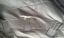 Die Decke wurde für den Offenstall benutzt und ist professionell gereinigt. Leider wurde bei der Reinigung der vordere Bauchgurt beschädigt, beeinträchtigt jedoch nicht den Sitz der Decke.
