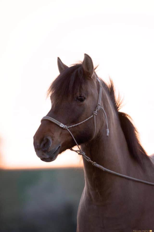Bei ihr wurde leider Anfang 2024 EMS diagnostiziert, durch viel Bewegung und Fressbremse auf der Koppel konnte ihr Gewicht schon gut reduziert werden und nur noch etwas Muskulatur müsste aufgebaut werden. Sie steht Moment in einem Offenstall und ist tagsüber mit Fressbremse auf Koppel.