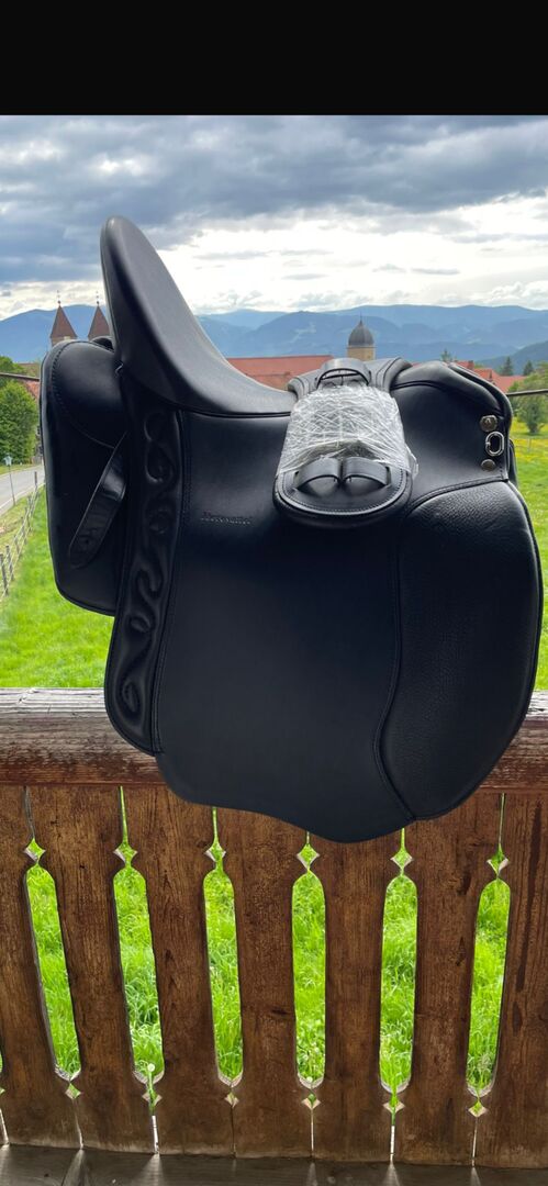 Sattel lag nur einmal auf dem Pferd.Sattel wurde nicht im Stall gelagert. Mit Sattelgurt und Steigbügelriemen. Neupreis über Euro 4.000.- Preis ist verhandelbar