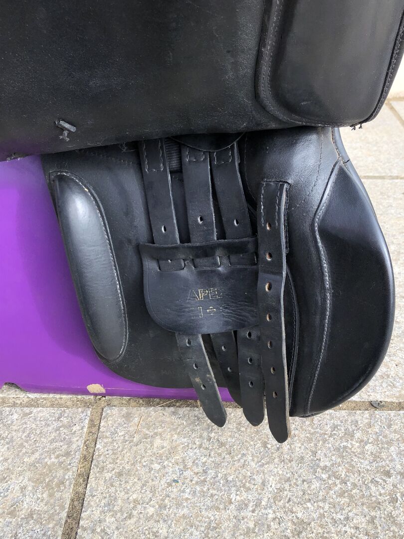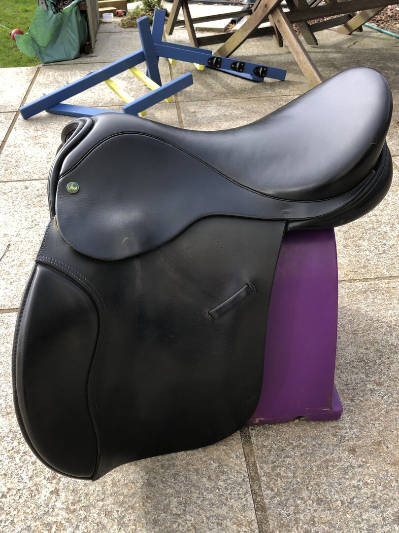 Schöne schwarze H und C in ausgezeichnetem Zustand und gut gepflegt. 9" D bis D kommen von einem Couchtisch Blagdon Cob. Kürzlich neu beflockt. Hoop Tree und gestempelt Wide auf der Steigbügelstange. Kann weitere Fotos auf Anfrage zur Verfügung stellen. Großartige Form für ein breitschultriges Pferd.