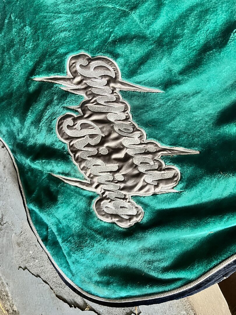 Biete eine Abschwitzdecke von Imperial Riding in 135. die Decke ist von außen aus Samt in Smaragdgrün. Das Größenetikett ist abgeschnitten, mache aber auf Wunsch gerne Bilder von der gemessenen Rückenlänge.