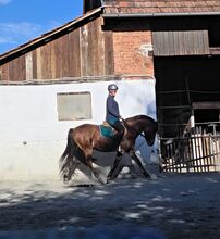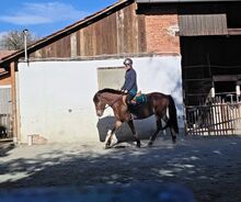 Im Umgang ist er sehr brav und unkompliziert – lässt sich ruhig führen, putzen und satteln. Auch beim Longieren zeigt er sich aufmerksam und macht gerne mit.