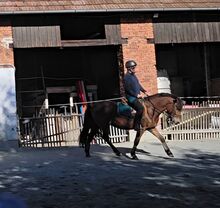 Er wurde bereits mehrmals vor der Kutsche gefahren und zweimal geritten ( wird weiter gearbeitet mit ihm). Bereits beim 2.mal konnte der Reiter alleine aufsteigen...soviel zu seiner Lernbereitschaft und vertrauen. Dabei zeigt er sich unerschrocken, lernwillig und mit tollem Charakter – er lernt schnell und möchte immer alles richtig machen.