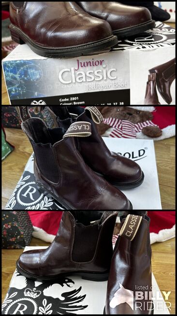 Reitstiefel, die ein paar Mal getragen wurden und aus denen mein Kleiner jetzt herausgewachsen ist. Immer noch gut für den täglichen Gebrauch. Einige Anzeichen von Verschleiß, aber nichts offensichtlich / schädlich für die Stiefel.