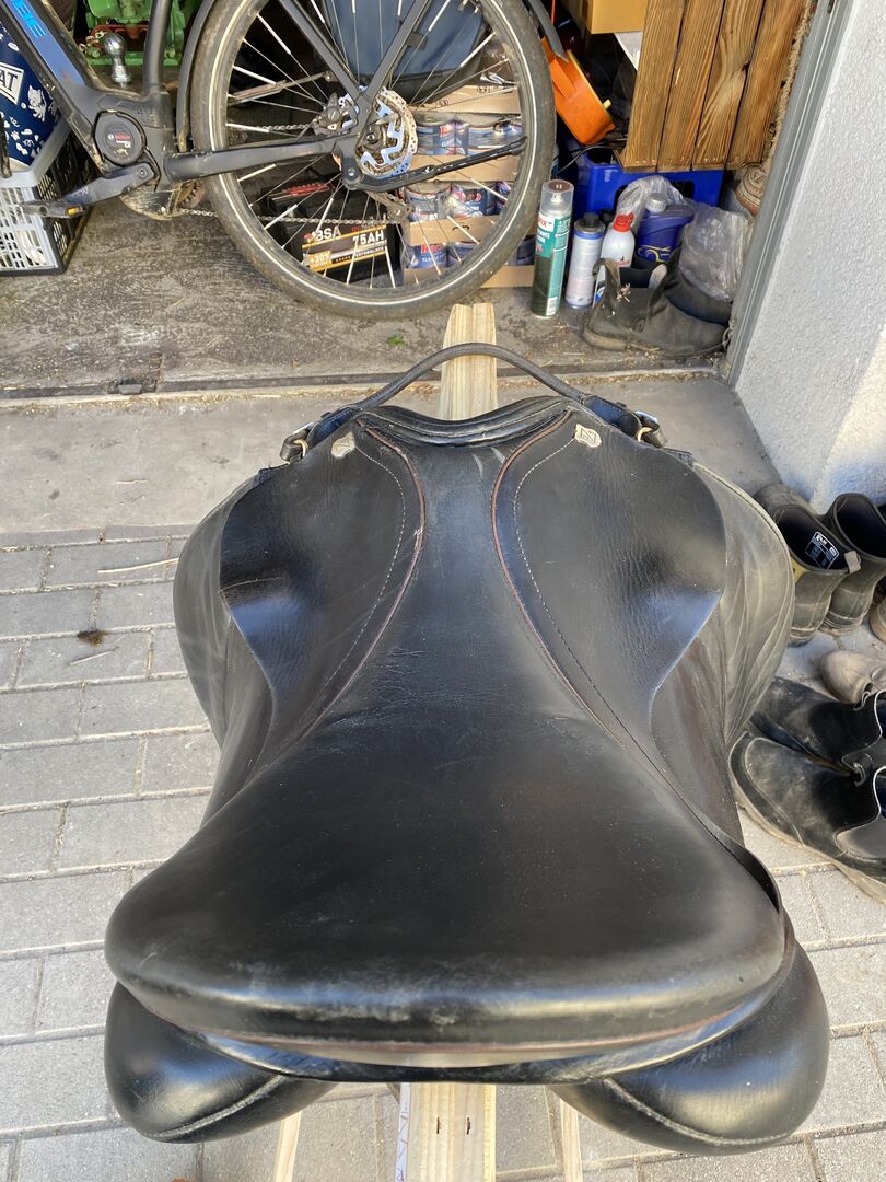 Verkaufen einen Dressursattel von Massimo für sehr breite Pferde und Kurze Pferde KW 40. Der Sattel ist frisch gepolstert passt jedoch nicht optimal auf unseren Kaltblüter.