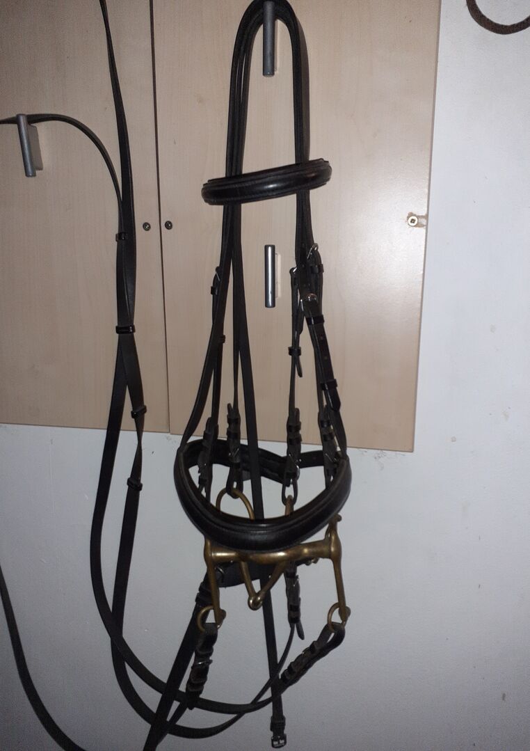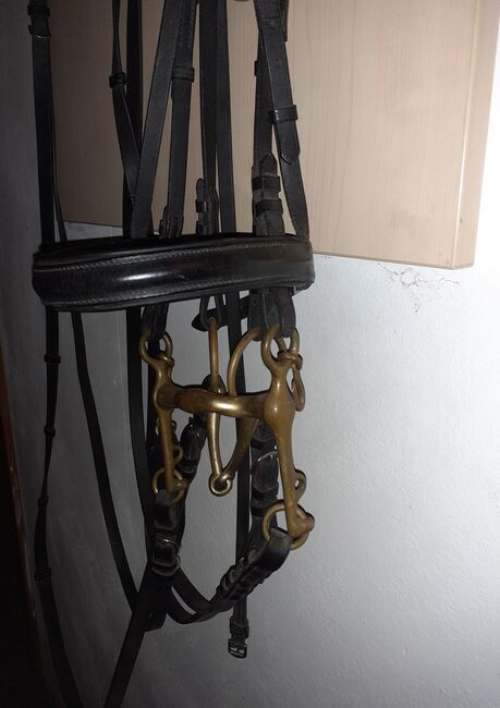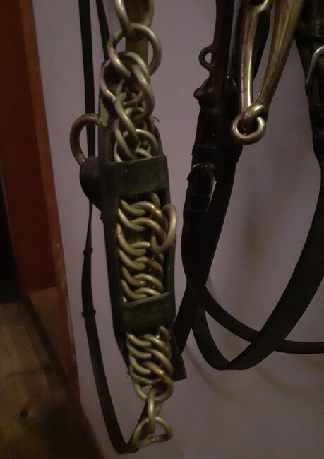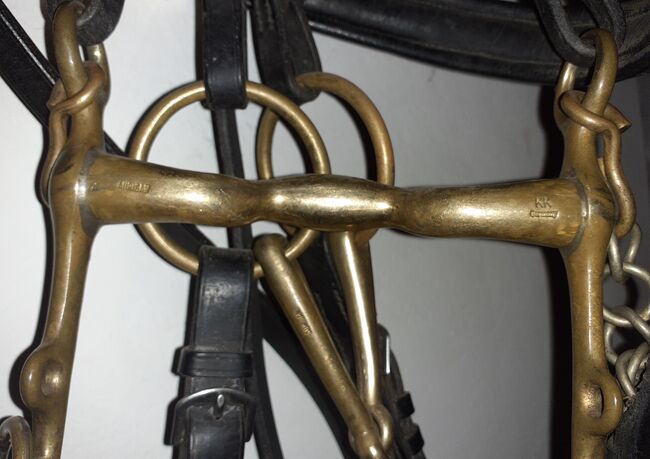 Dressur Kandarenzaum komplett - Kandarengebiss Sprenger KK ultra aurigan Gr. 14cm - Unterlegtrense Sprenger KK ultra aurigan Gr. 14cm - kinnkette - Zügel Leder 1x m. Steg 1x glatt War nur 2-3 mal am Pferd daher sehr guter zustand.