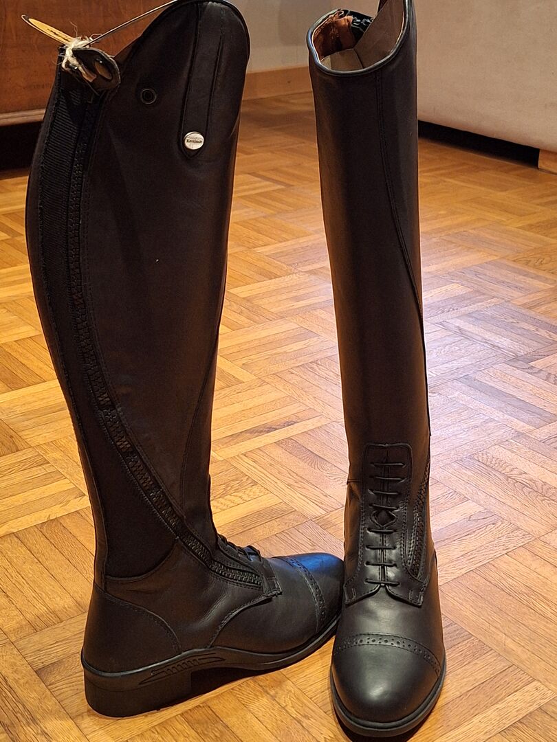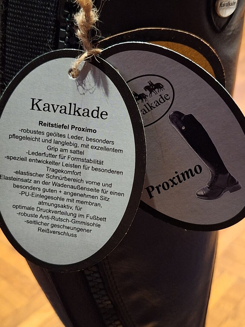 „Der Proximo besteht aus erstklassig, geöltem Leder. Geöltes Leder verspricht eine hohe Geschmeidigkeit und Langlebigkeit. Schon bei der Gerbung wird das Leder in pflanzliches Öl eingelegt. Dabei öffnen sich die Poren des Leders und das Öl dringt tief unter mehrere Schichten. Somit entsteht ein leicht memorierter Effekt. Geöltes Leder ist deutlich anschmiegsamer, langlebiger und trocknet nicht so schnell aus. Der speziell entwickelte Leisten, der Elasteinsatz an der Wadenaußenseite und im Schnürbereich, sorgen zusätzlich für einen besonders guten und angenehmen Sitz. Der seitliche Reißverschluss am Stiefel ist ideal, um ihn bequem und einfach an- und auszuziehen. Die hochwertigen Einlegesohlen bieten eine optimale Druckverteilung im Fußbett und sind gleichzeitig, für ein frisches Fuß-Klima, atmungsaktiv. Die robuste Anti-Rutsch-Gummisohle des Stiefels ist sehr flexibel, ermöglicht ein anatomisches Abrollen und ist schonend für die Gelenke.