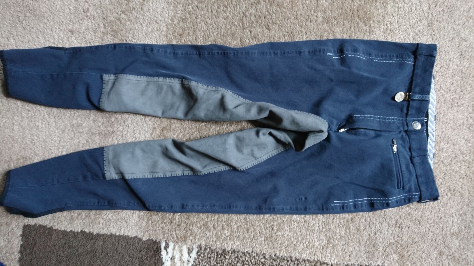 Leider müssen wir schweren Herzen und aus gesundheitlichen Gründen unser Hobby aufgeben. Daher bieten wir hier eine kaum getragene Kinderreithose in der Größe 170 an. Sie stammt aus dem Hause Pikeur. Vorne hat sie eine kleine Tasche. Vollbesatz ist unbeschädigt. Sie ist sehr bequem und angenehm zu Tragen. Es sind auch keine Löcher, Flecken oder andere Beschädigungen vorhanden. Die Reithose ist frisch gewaschen.