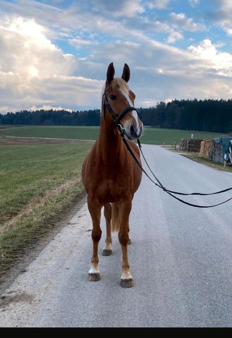 Er ist ca.156 cm groß, 6 Jahre alt, gesund und befindet sich zur Zeit in seiner Grundausbildung. Er verfügt über einen anständigen Charakter, wobei seine enorme Arbeitswilligkeit hervorzuheben ist. Zudem ist er überaus lernwillig. Bei entsprechend positiv konsequentem Umgang kann man schnell große Fortschritte verzeichnen. Er beherrscht das Longieren mit Sattel und kennt außerdem das Spazierengehen, sowie den Straßenverkehr. Nebstdem hat der Herr viel Spaß an Bodenarbeit.