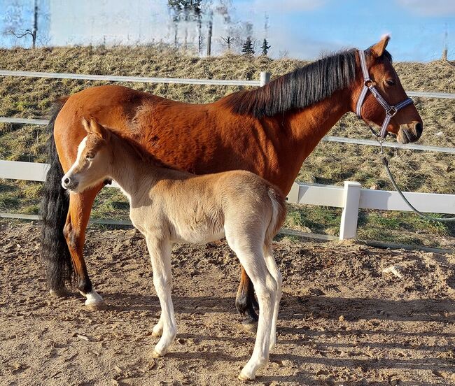 Sie hat ein wunderbar feines Gesicht und bewahrt immer einen klaren Kopf, egal in welcher neuen Situation. Sie überzeugt mit ihrer Neugier, gepaart mit dem richtigen Temperament, ihrem Auftreten und Präsenz, vor allem aber ihrem freundlichen und ehrlichen Wesen wenn sie einen mit einem freudigen Wiehern begrüßt und sich auf ihre Krauleinheiten freut. Sie ist total Menschen bezogen und wächst bei uns mit Familienanschluss auf, total lieb und lässt sich liebend gern putzen. Hufe heben, auskratzen oder gar beim Hufschmied gibt es überhaupt keine Probleme.