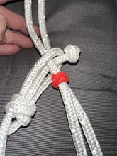 Mit vereinfachtem Verschluss. Den kl. Roten Knoten kann man auf die Richtige Länge schieben, und dann ähnlich wie bei einem Gürtel zu machen.