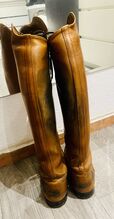 Die Sohlen wurden neu gemacht und ansonsten sind die Stiefel in einem sehr guten Zustand. Sie weisen normale Gebrauchsspuren durch das Sattelblatt und Sporenriemen auf. Ansonsten sind sie top in Schuss