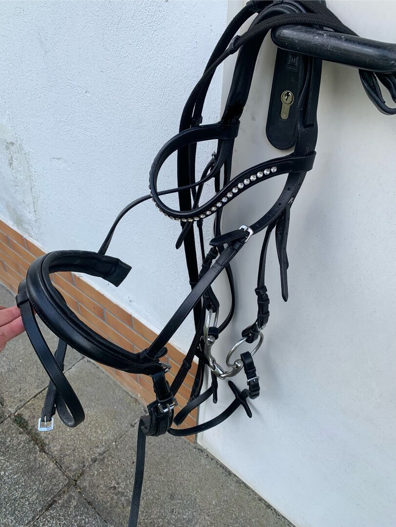 Verkaufe ein neues und unbenutztes schwarzes kombiniertes Reithalfter von Loesdau in der Grösse Vollblut, da ich leider keine Verwendung dafür habe. Die Trense verfügt über weiches anschmiegsames Leder. Der Stirnriemen ist enthalten. Ein doppelt gebrochenes Gebiss kann miterworben werden, muss es aber nicht. Das Maß des Gebisses kann dem Foto entnommen werden. Bei Interesse am Gebiss gerne einfach ein Angebot machen