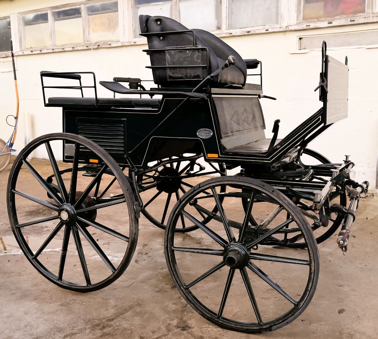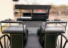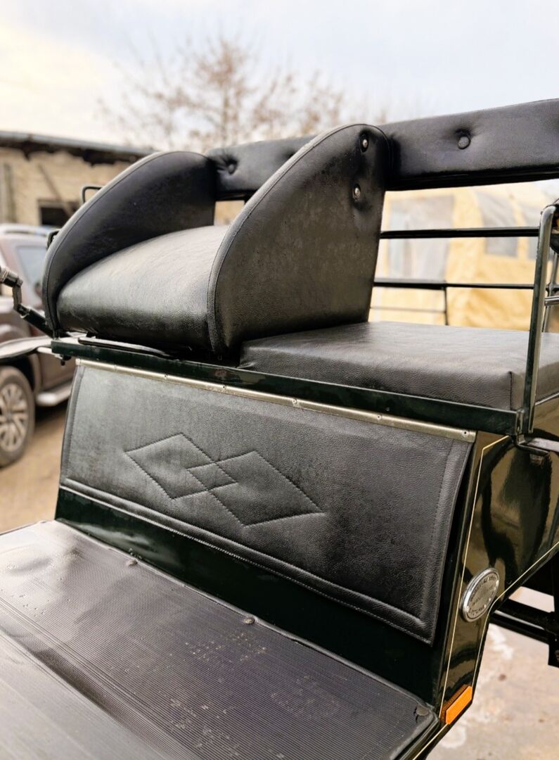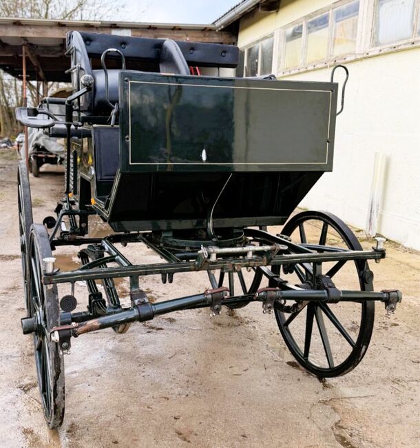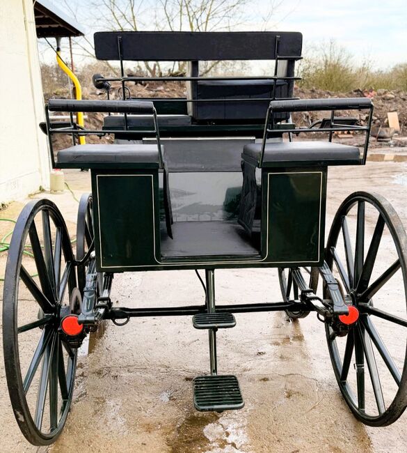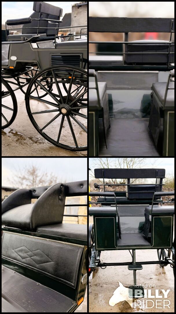 Eine etwas in die Jahre gekommene aber sehr schöne Break Kutsche von Kühnle in Dunkelgrün. Sie ist für Pferde von 145cm-170cm geeignet. Spurbreite: 145 cm/150 cm Vollgummibereifung, Scheibenbremsen, Kurbelbremse, Schere und Deichsel sind im Lieferumfang enthalten. Platz für 4 Personen. Zwei gegenüberliegende Sitze hinten. Gebrauchsspuren vorhanden, siehe Bilder.