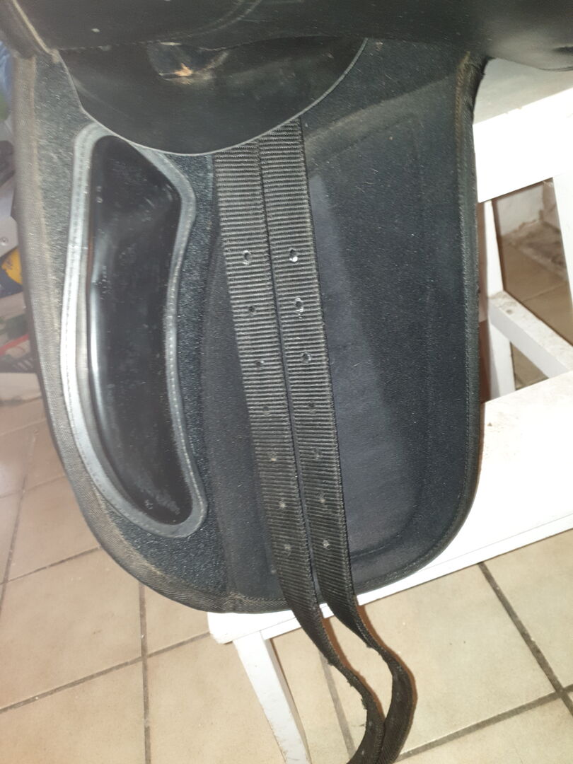 Hallo, ich verkaufe meinen Dressursattel, da ich ihn nicht weit genug an mein Pony anpassen kann. Er ist aus Kunststoff und daher super leicht. Es ist das schwarze kopfeisen verbaut und ein grünes ist mit dabei.
