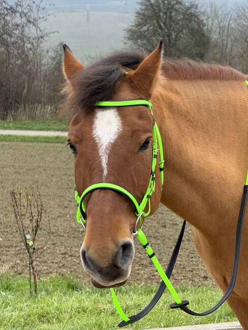 Dieses Kunststoff Zaumzeug Neongrün glänzend ist ein Produkt von der Marke Super Steeds. Das Zaumzeug kommt mit Zügel eignet sich für jedes Wetter. Das Basismaterial besteht aus einem reissfesten Textilmaterial, welches mit Kunststoff umwickelt ist. Dies ist eine preiswerte Alternative zu Zaumzeugen aus Original US Biothane.