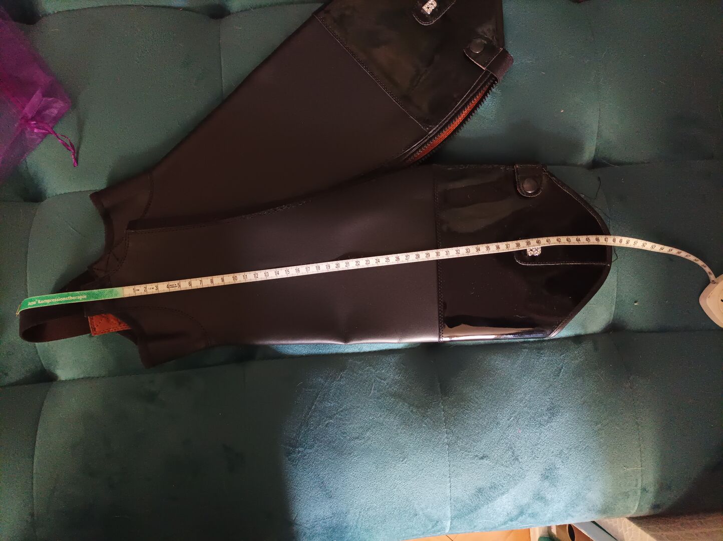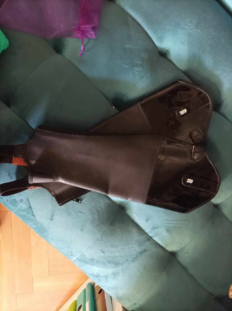 Lack Leder Dressur Chaps Schwarz extra schmahl extra lang