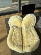 Wunderschönes, dickes Echt-Lammfell Sattelpad. Schwarz mit Natur Lammfell. Nur 1-2 Mal unter dem Sattel. Aussparung/dünneres Lammfell entlang dem Wirbelkanal. Mit Sattel-Befestigungs-Schlaufen. Es ist leider für meinen 17.5 Zoll Dressursattattel etwas zu knapp. Daher „leider“ abzugeben ;) …