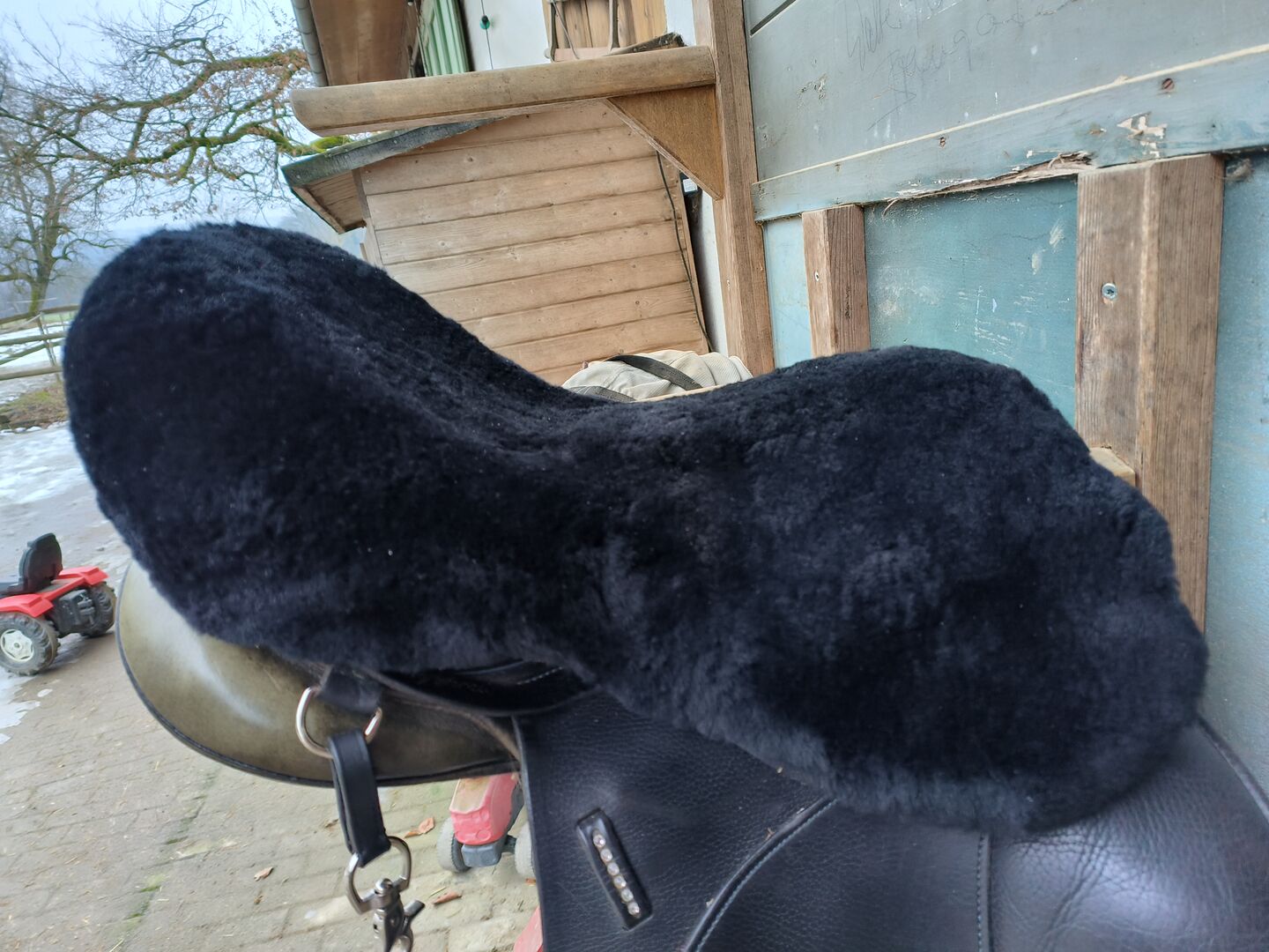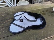 Neues, nie gebrauchtes Lammfell-Sitzwärmer von Felix Bühler. Vermittelt ein weiches und warmes Sitzgefühl. 100 % medizinisches Lammfell. Mit Gummizug und Befestigungsschlaufen für perfekten Sitz. Passend für Sättel mit Sitzgrösse 16,5" - 18". Waschbar bei 30 Grad Wollpflegeprogramm. Nur mit Lammfellwaschmittel waschen. (NP: Fr. 90.-)