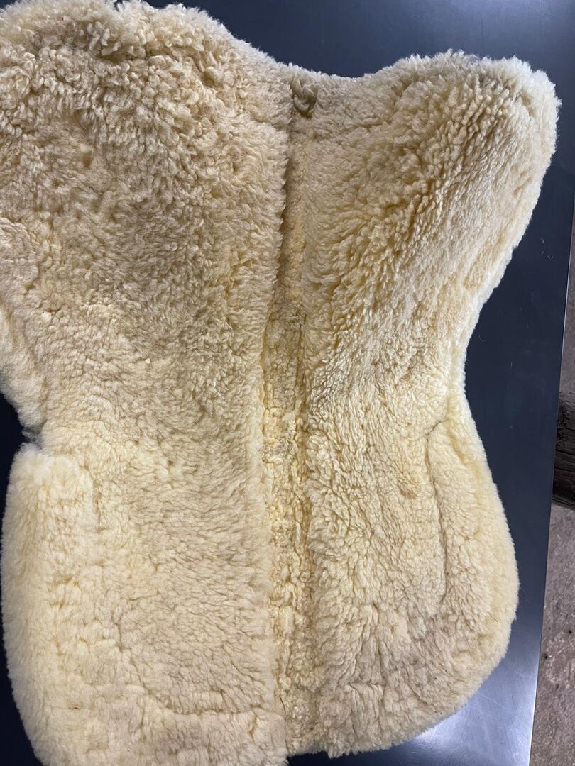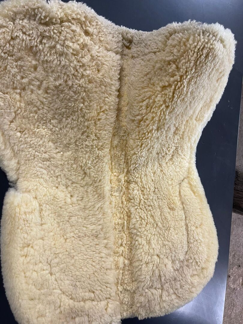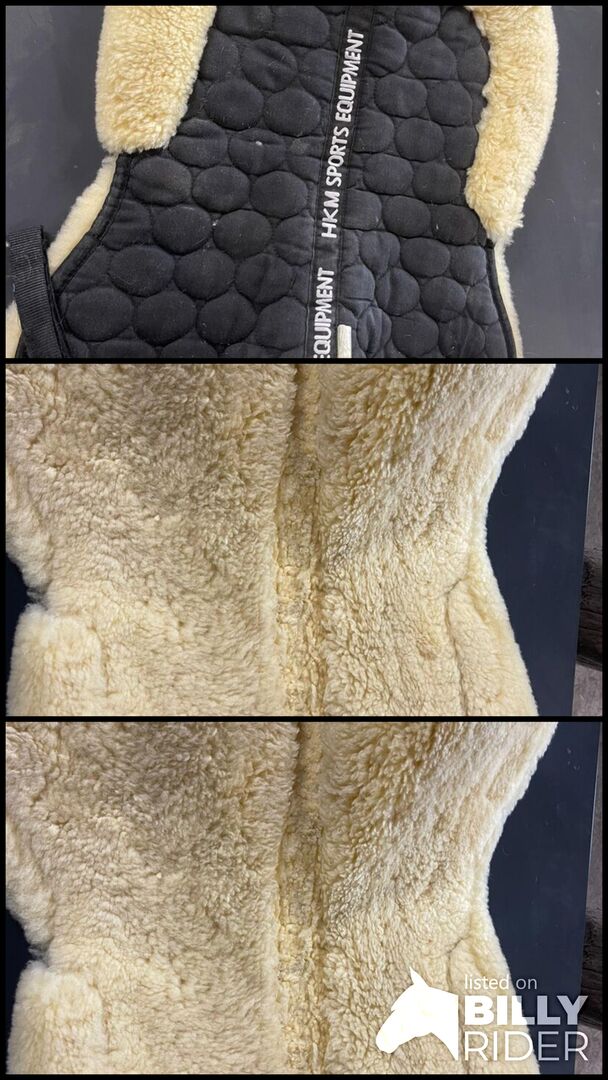 Gut erhaltenes HKM Lammfellpad. Kann sowohl für den Spring- als auch den Dressursattel verwendet werden. Bietet viel Wirbelsäulen- und Widerristfreiheit.