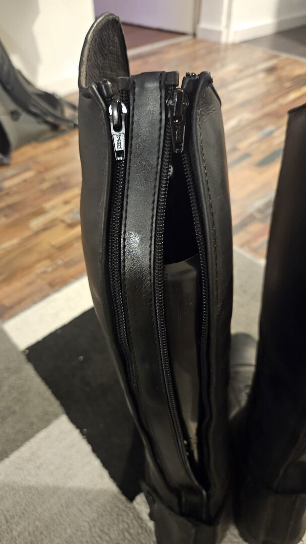 Leider funktioniert links der Reißverschluss nicht richtig. Die Reißverschlüsse sind unten offen, was sie eigentlich wenig anfällig für solche Schäden macht. Der beschädigte Reißverschluss lässt sich manchmal schließen, geht aber sofort wieder auf. Wer sich damit etwas auskennt, könnte das reparieren.