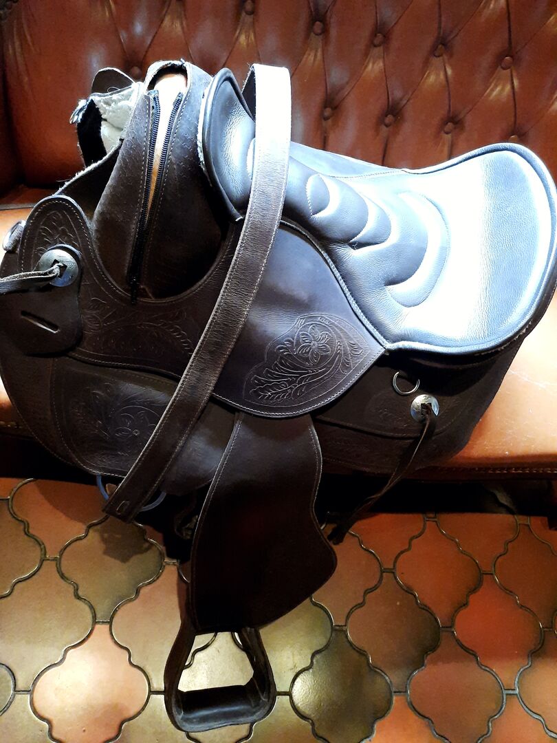 Verkaufe baumlosen Westernsattel, Leder, wenig Gebrauchsspuren, da Fehlkauf. Inklusive Barefoot Lammfell Sitz, Zwiesel/Fork mit Horn und Wechselzwiesel mittlere Größe. 16 Zoll. Weitere Infos siehe Bilder. Gepflegter Zustand.