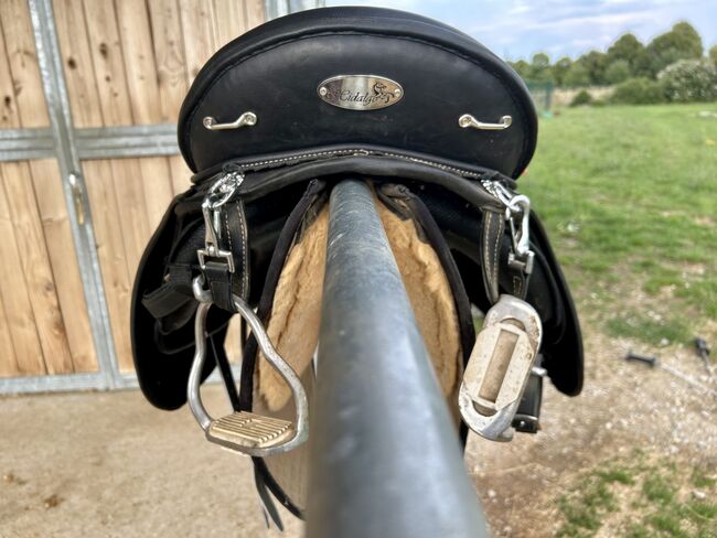 Der Sattel lag bei mir nur etwa dreimal auf dem Pferd und wird jetzt wegen Aufgabe des Reitsportes abgegeben. Ursprünglicher Preis in neuwertigem Zustand war knapp 1.600,- €. Zustand ist auf den Fotos dokumentiert. Fragen werden gerne beantwortet. Neuwertige Grandeur Satteldecke und anderes Zubehör kann gegen Kostenübernahme mit übernommen werden (Preis ist ohne Zubehör!). Im Preis enthalten ist natürlich der Sattelschoner und ein zusätzlicher Satz Klettkissen (für schwerere Reiter). Der Sattel wird nicht zum Testen verliehen. Die Versandkosten betragen ca. 20,- €