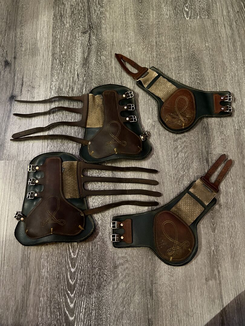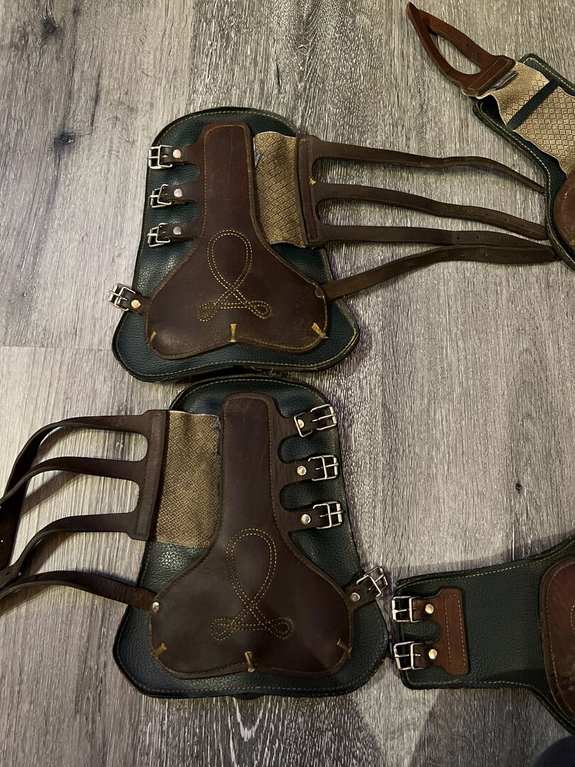 Gamaschen ist Full. Durch die Schnallen sind sie optimal ans Pferdebein anzupassen. Das Leder ist weich und immer gepflegt worden. Ich habe die Gamaschen selten genutzt, da sie nicht richtig an meinen Friesen passen. Daher dürfen sie gerne ein anderes Pferd schützen.