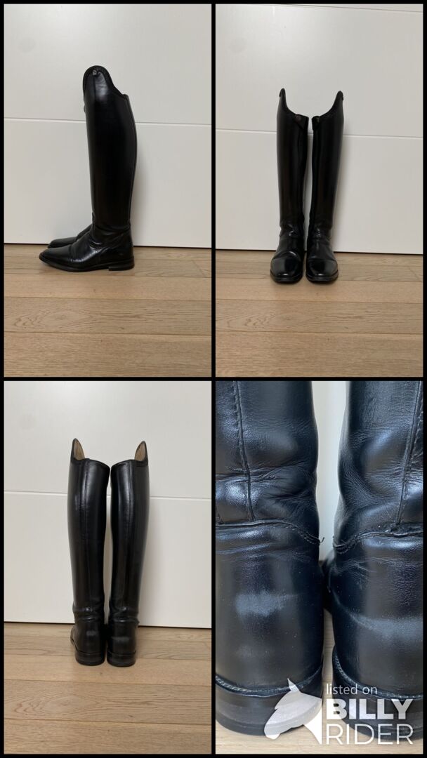 Der Stiefel ist eingelaufen und weist übliche Gebrauchsspuren auf. Beim rechten Stiefel ist hinten eine Naht offen (Übergang Schaft zum Schuh, Bild 7). Hat bisher nie gestört, deshalb habe ich es nicht nähen lassen. Ansonsten gepflegter und einwandfreier Zustand.