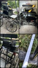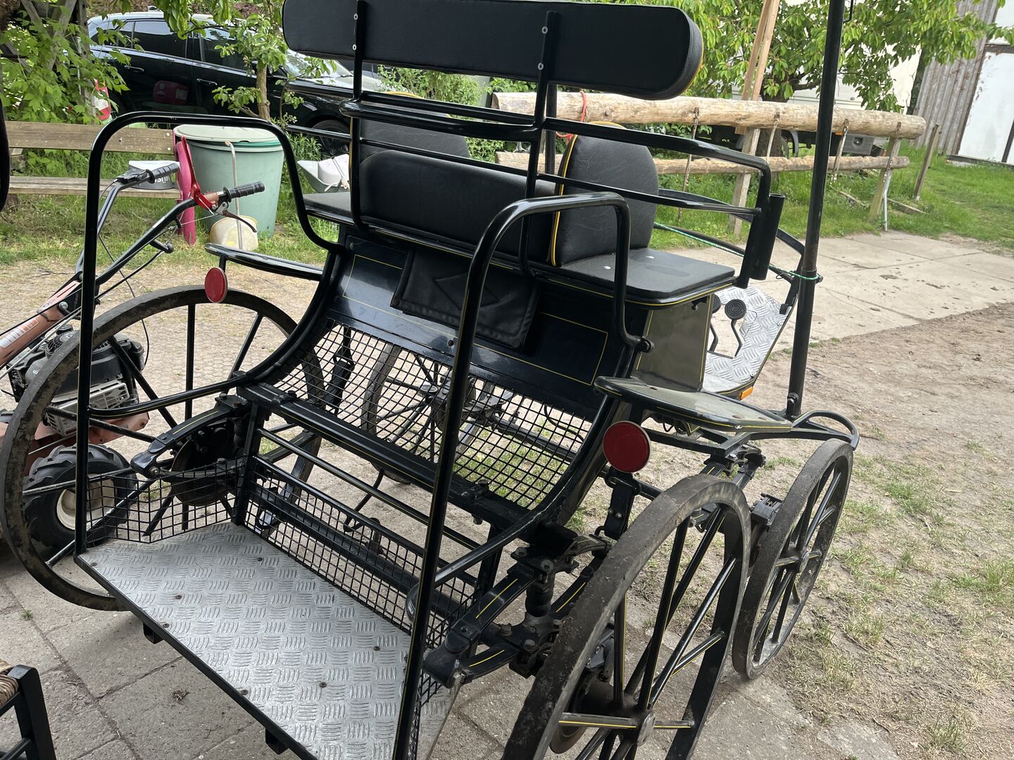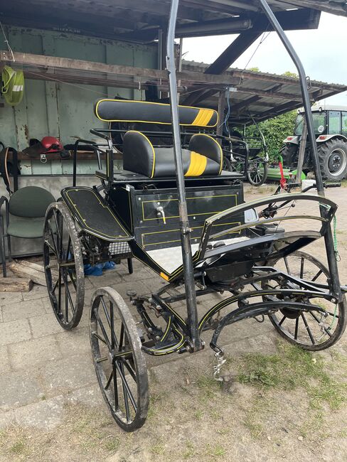 Verkaufe eine leichte Kutsche, da ich auf zweispännig umgestiegen bin. Ein Groomsitz ist dabei. Habe die Gummierung auf den Vorderreifen machen lassen. Es müssen die Bremssättel gemacht werden. Habe sie genutzt um im Bergischen zu fahren und in der Halle. Passt in einen Pferdeanhänger