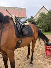 Verkaufe unseren Lemetex Dressursattel, er passt auf schmalere Pferde mit mittleren Widerrist. Er ist gut genutzt, das Leder reißt ein wenig, aber wenn man ihn sauber macht fängt er auch wieder an zu glänzen. Ich habe ihn zum Pferd dazu bekommen, weswegen ich keine genauen Angaben machen kann.