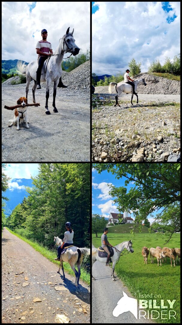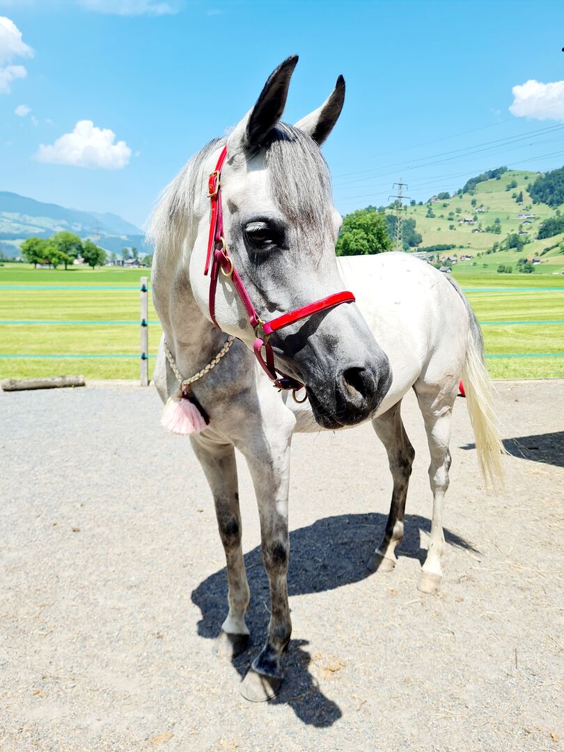 Sie hat keine Angst vor Fahrzeugen, Traktoren etc und ist super lieb beim Schmied. Sie geht alleine wie auch in der Gruppe ins Gelände und geht auch gerne voraus. Ihr Temperament ist Arabertypisch. Sie geht gerne zackig voran und ist auch im Schritt immer zügig unterwegs. Sie ist sehr sensibel und reagiert auf kleinste Hilfen und ist daher auch immer gut handelbar. Sie hat bei uns viel Erfahrung gesammelt (Brücken, Verkehr, Velos, Wasser etc) und macht alles brav mit. Da sie jedoch noch jung ist braucht sie einen erfahrenen Reiter, der sie weiter fördert. Sie steht am Anfang ihres Lebens und ist sicherlich geeignet für ambitionierte Freizeitreiter, Zucht und in Zukunft evt auch Dressur oder Distanz.