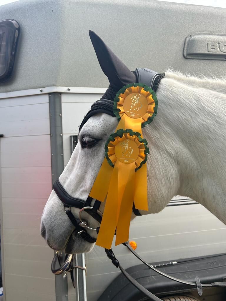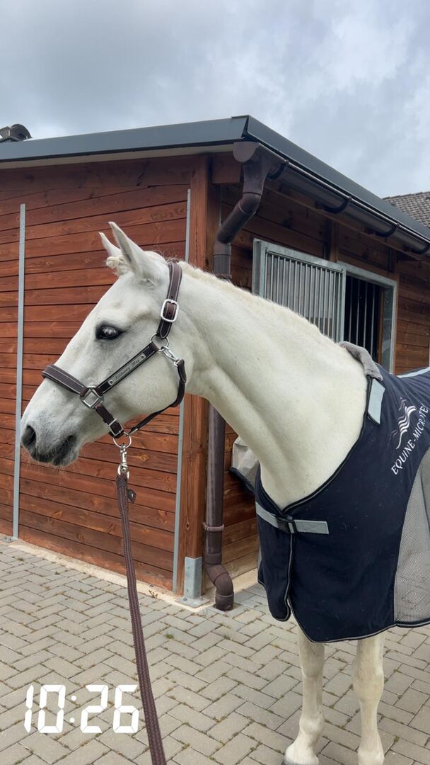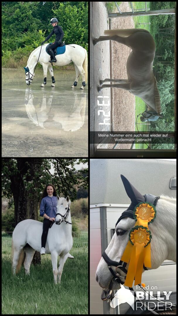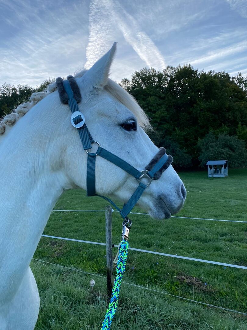 Wir verkaufen unsere 15 jährige, 148 cm große Connemarastute May. Ausgebildet ist sie in der Dressur bis zu einem soliden L- Niveau und bis A** platziert. Springen kann man sie auch problemlos über einen A Parcours, was wir aber nicht weiter gefördert haben. Sie ist das Verlasspony schlecht hin, sie trägt den Reiter immer durch jede Prüfung.