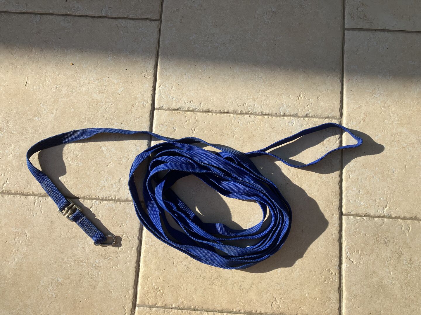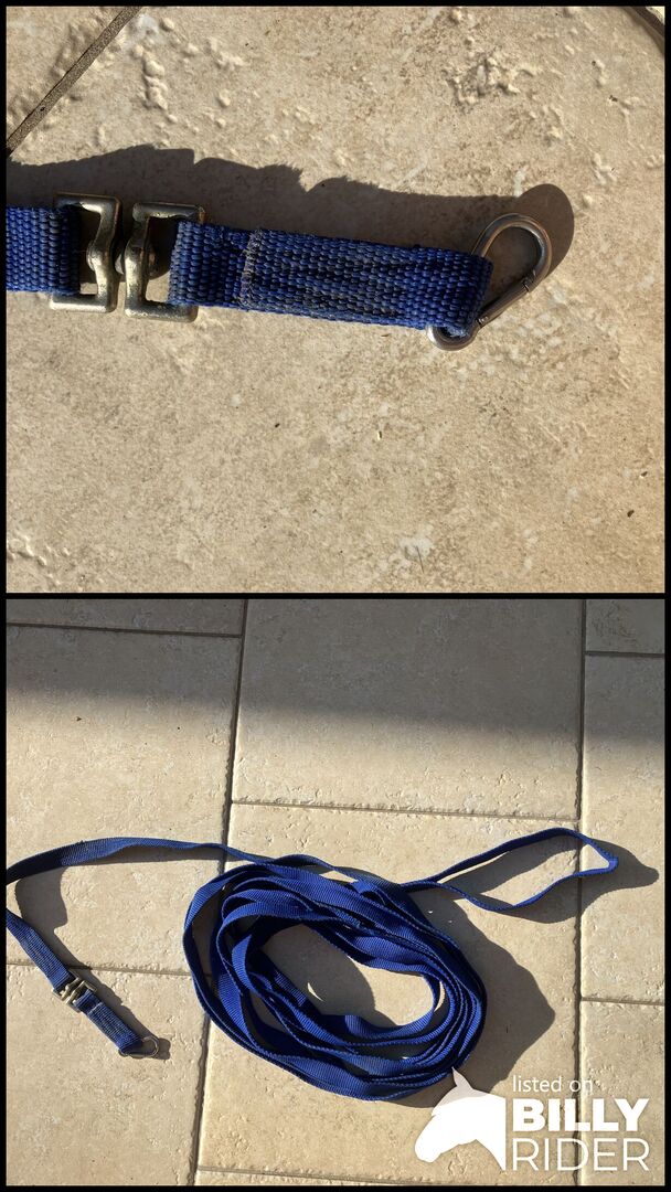 Ich biete hier eine kaum genutzte Longe in blau mit einem Karabiner zum einhängen . Länge : 8,60 m Breite 25 mm Zustand siehe Fotos Privatverkauf-keine Garantie- keine Rücknahme