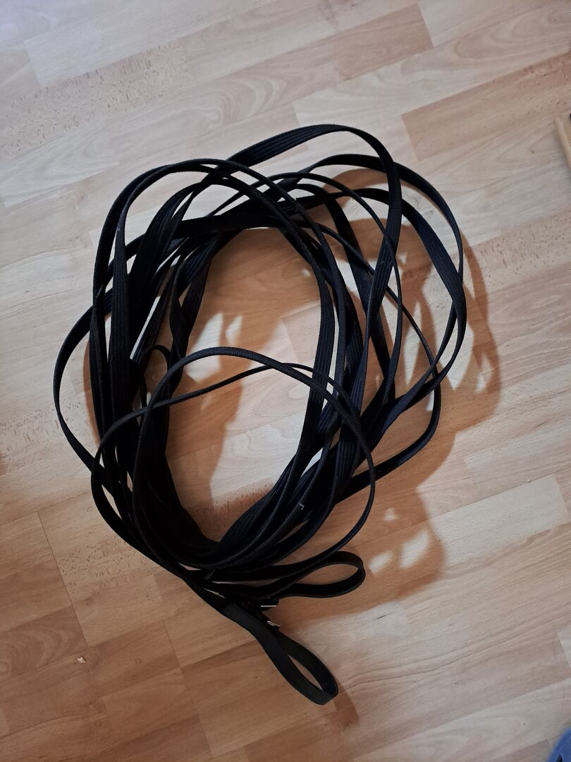 Verkaufe gebrauchte, gut erhaltene Longen, 2 Stück zu jeweils 8 Meter. Zusammen als Doppellonge/ Fahrleinen verwendbar. Sie werden am Kappzaum mittels Lederschlaufe befestigt, für pferdefreundliches Longieren ohne Snaps. Am Ende ist eine Handschlaufe an jeder Leine. Ich bin auf kürzere Leinen umgestiegen und nutze die langen Longen nicht mehr. Eine Longe kostet 10 €, beide zusammen gebe ich für 18 € ab. Versand gegen Vorkasse/ PayPal möglich. Sonst gerne Barzahlung bei Abholung.