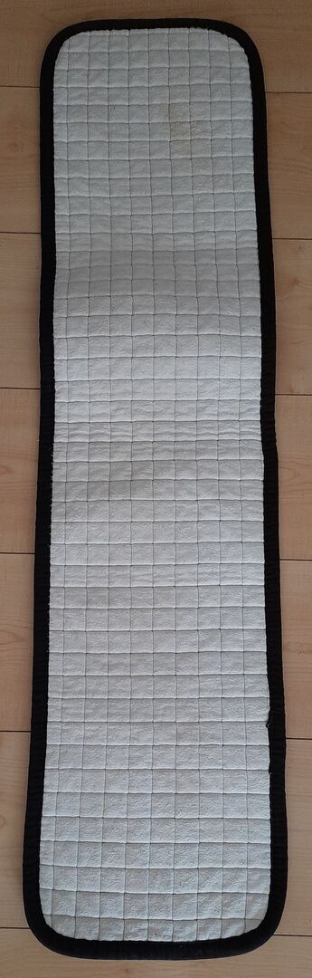 einfache Longiergurt-Unterlage. Maße: 1,09cm Länge 27cm Breite. Farbe: dunkelblau/weiss. Marke: unbekannt.