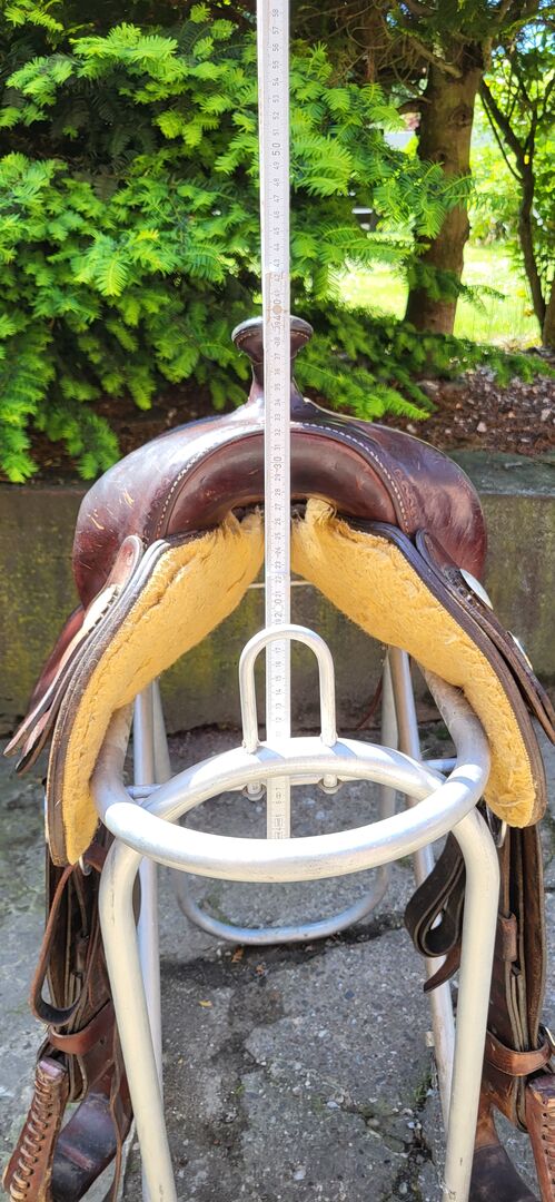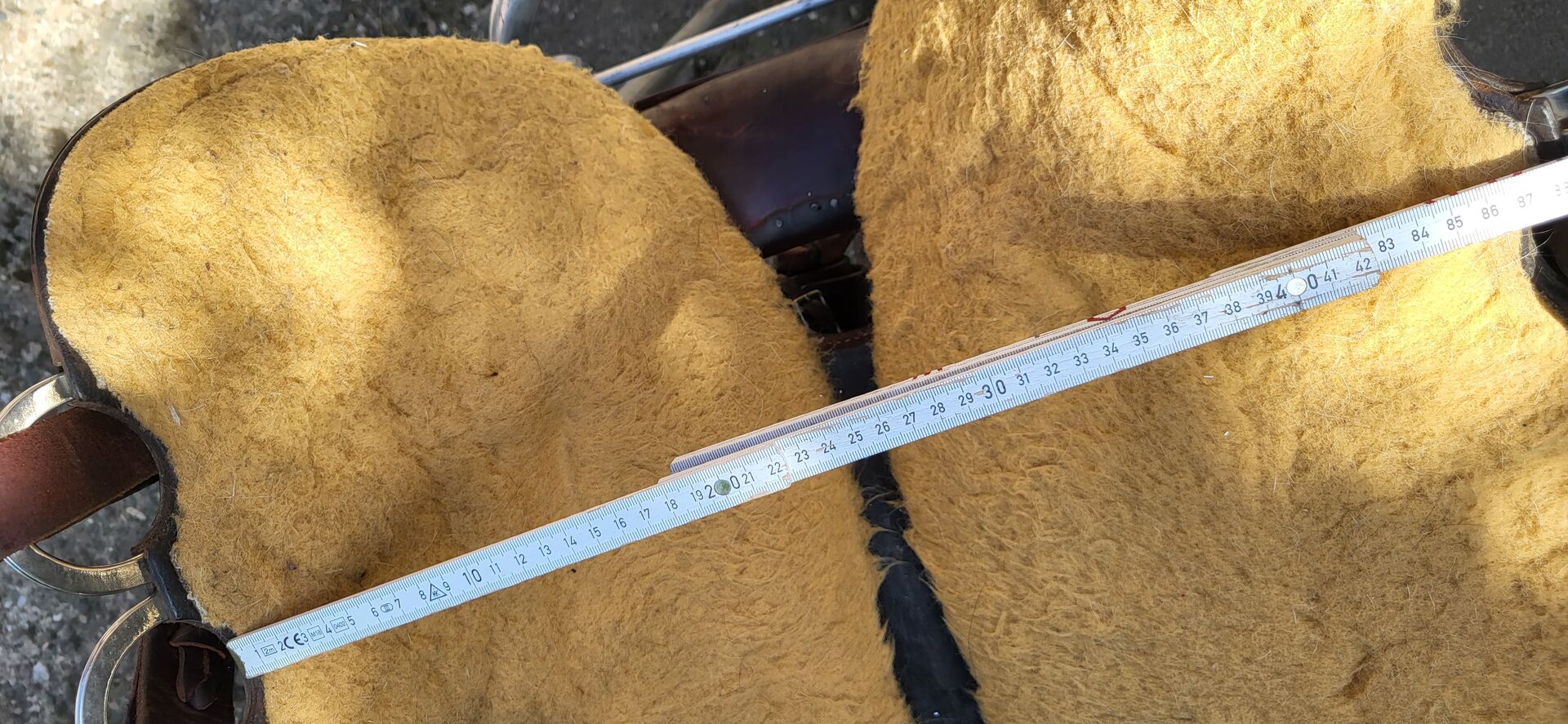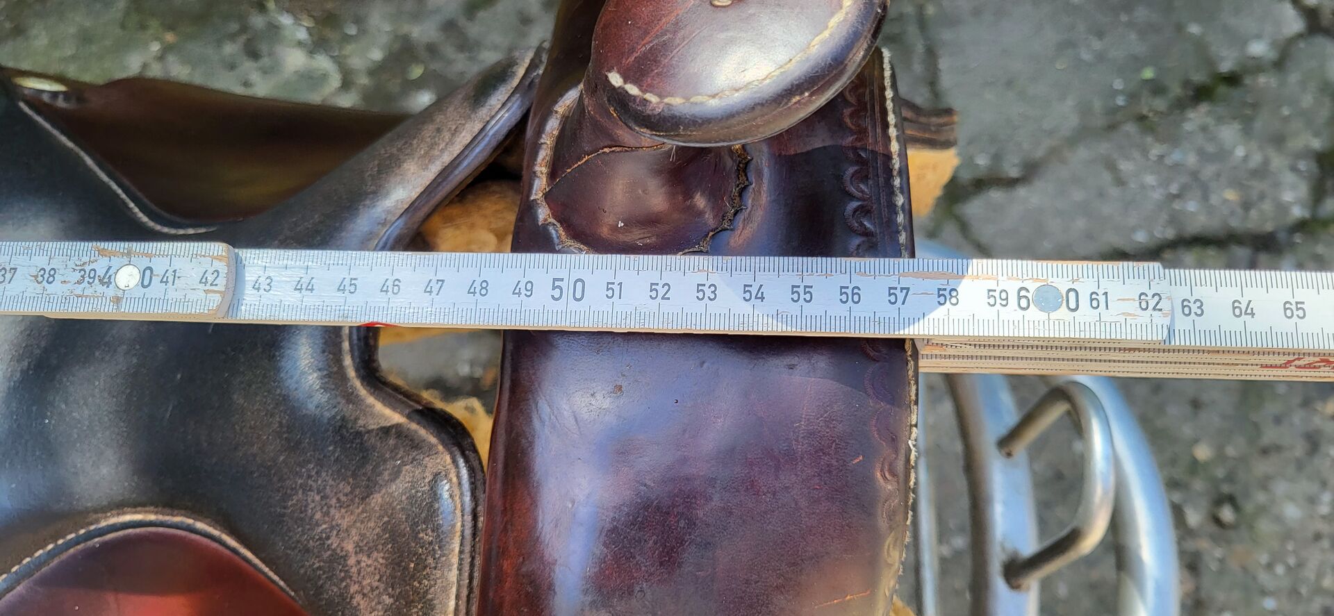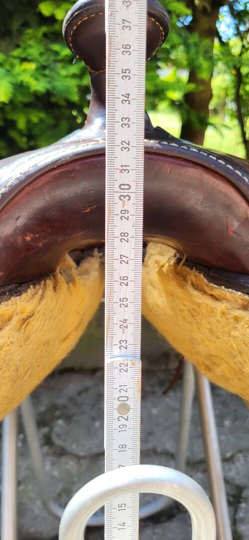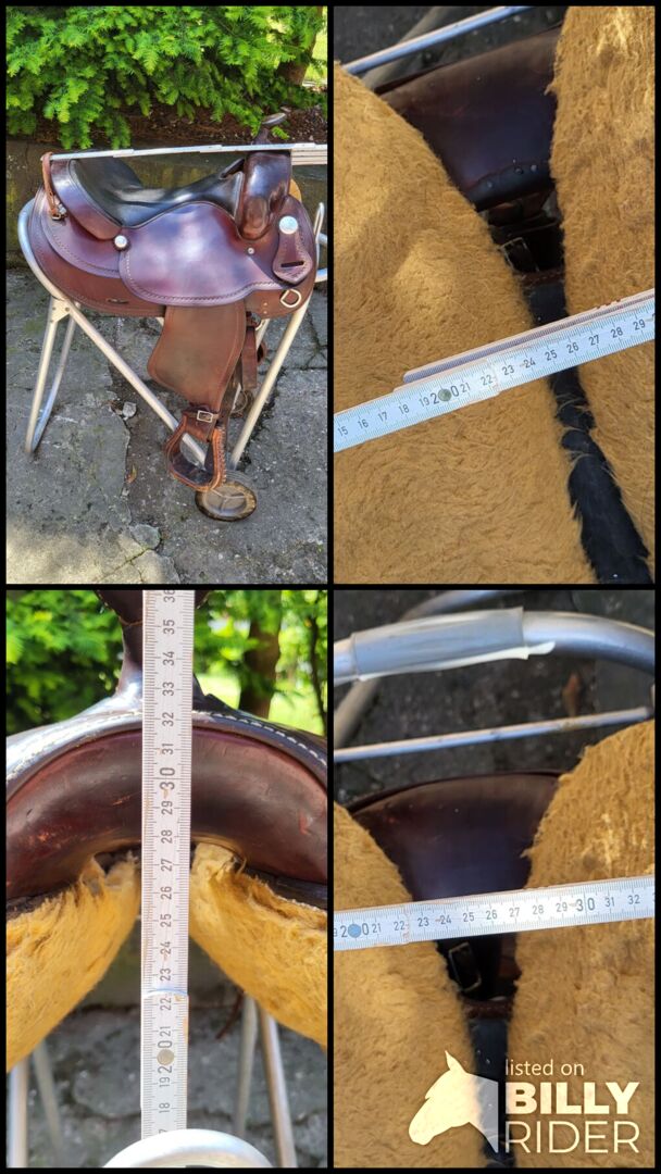Sitzgröße 15,5", super bequem, nah am Pferd. Roundscirt mit Strings auf dem Backjockey, ausgedrehte Fender