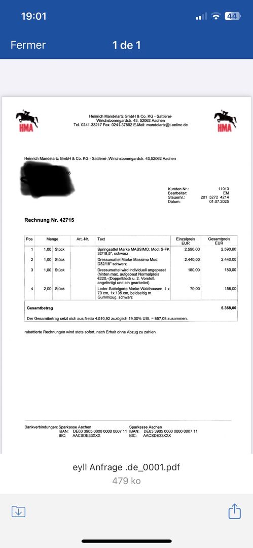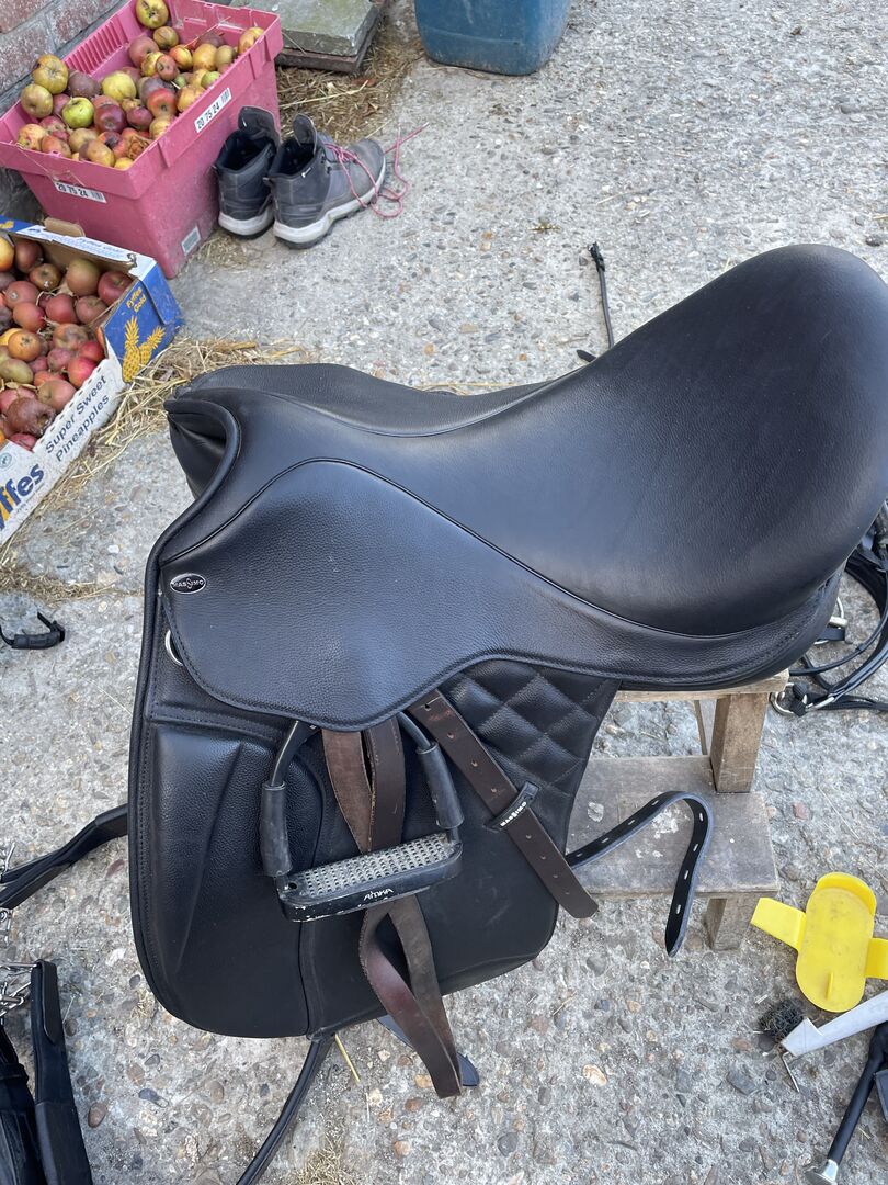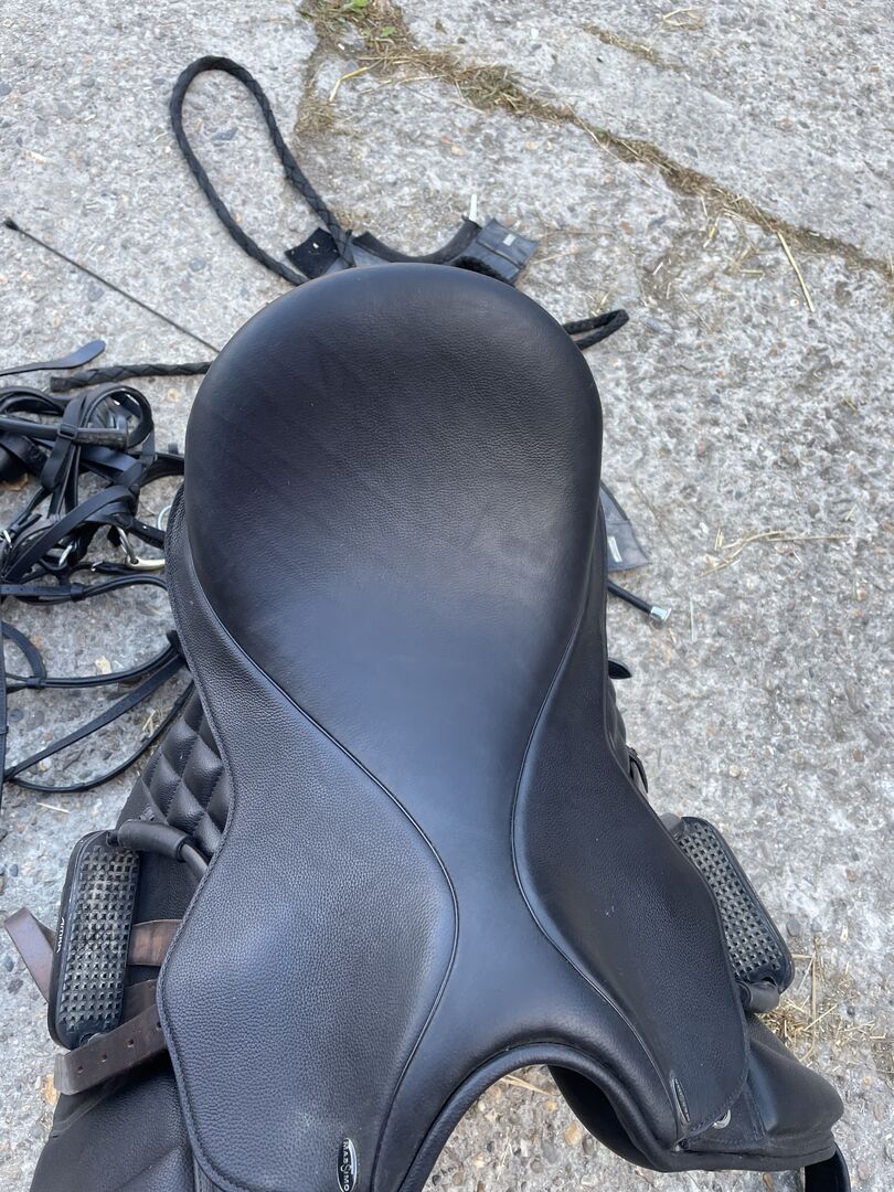 Original Rechnung unter Fotos. Sattel passt leider nicht zu meinem Pferd, lag nur 5 Mal drauf, ansonsten im Spind, also neuwertig. Kammer 32, kann geweitet werden. Zoll 18,5, fällt wie eine 18 aus.