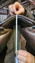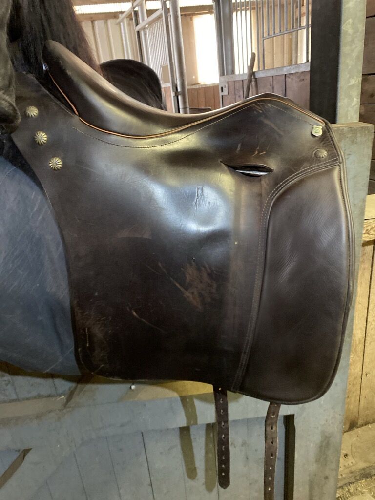 Ich verkaufe meinen gern gebrauchten Massimo-Sattel. Es handelt sich um einen Flachsitzer, der viel Bewegung zulässt und nirgendwo einengt. Kopfeisen war mal Größe 34, wurde vor anderthalb Jahren von 80 Grad auf 90 Grad gestellt. Dies passiert Massimo-typisch kalt, wodurch auch bei mehrmaligen verstellen kein ,,Ausleiern“ des Eisens passiert.