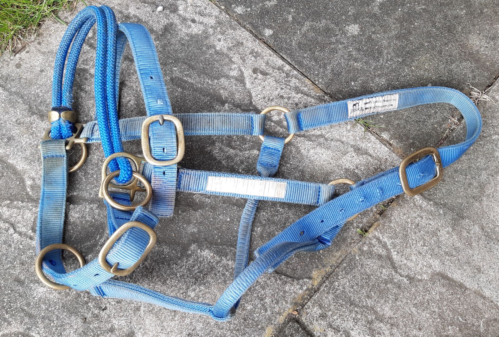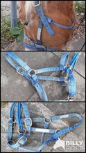 Verstellbarer Nasenriemen oben und unten, verstellbarer Genickriemen, doppelt vernähtes Nylonband und beidseitige Ringe.