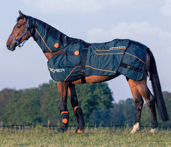 Das BEMER Horse Premium Set beinhaltet die komplette Horse Line bestehend aus der BEMER Pferdedecke, dem BEMER Halsapplikator und den BEMER Gamaschen. Abgerundet wird das Set durch eine Abschwitzdecke und eine Tragetasche. Pferdedecke, Halskrause und Gamaschen sind das perfekte Trio für Ihren Stallalltag. Die hochwertige Abschwitzdecke ist nicht nur funktional, sondern schützt auch Ihre Pferdedecke. Die Tragetasche sorgt für einen einfachen Transport des gesamten Sets. Alle BEMER-Produkte verfügen über eine integrierte Kombination aus Akku und Signalcontroller, die eine kabellose Nutzung gewährleistet.