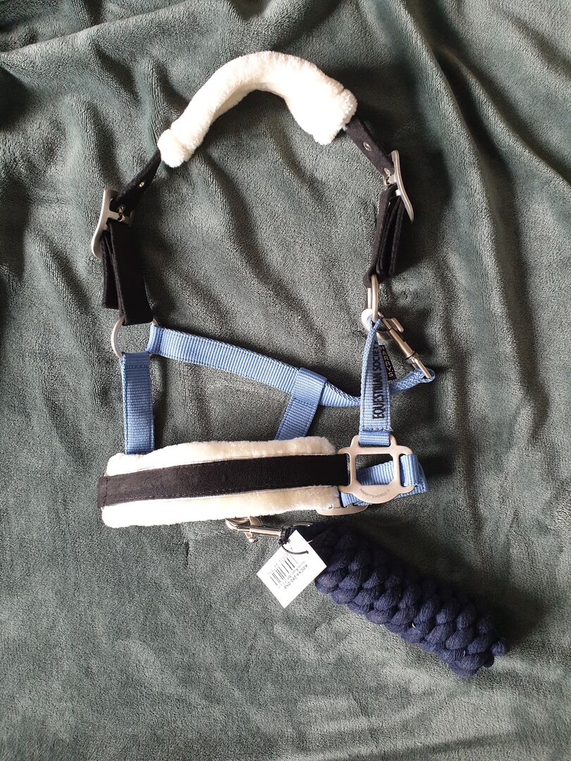 Halfter mit Teddyfell von der Marke Harry's Horse. Das Halfter ist an 3 Stellen verstellbar und hat an Genick sowie am Nasenstück weiches Teddyfell. Das Halfter ist Größe Pony, war für mein Deutsches Reitpony eher zu klein - würde sagen eher für kleines Ponys / Shettys oder Fohlen geeignet. War nur zu Anprobe am Stall.