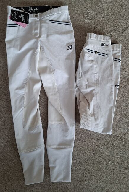 Ich biete hier eine neue Turnierreithose der Marke Spooks. UVP 139 Euro. Wir haben noch eine 2x benutzte Hose der gleichen Marke und Größe. Für 30 Euro zusätzlich lege ich sie mit ins Paket.
