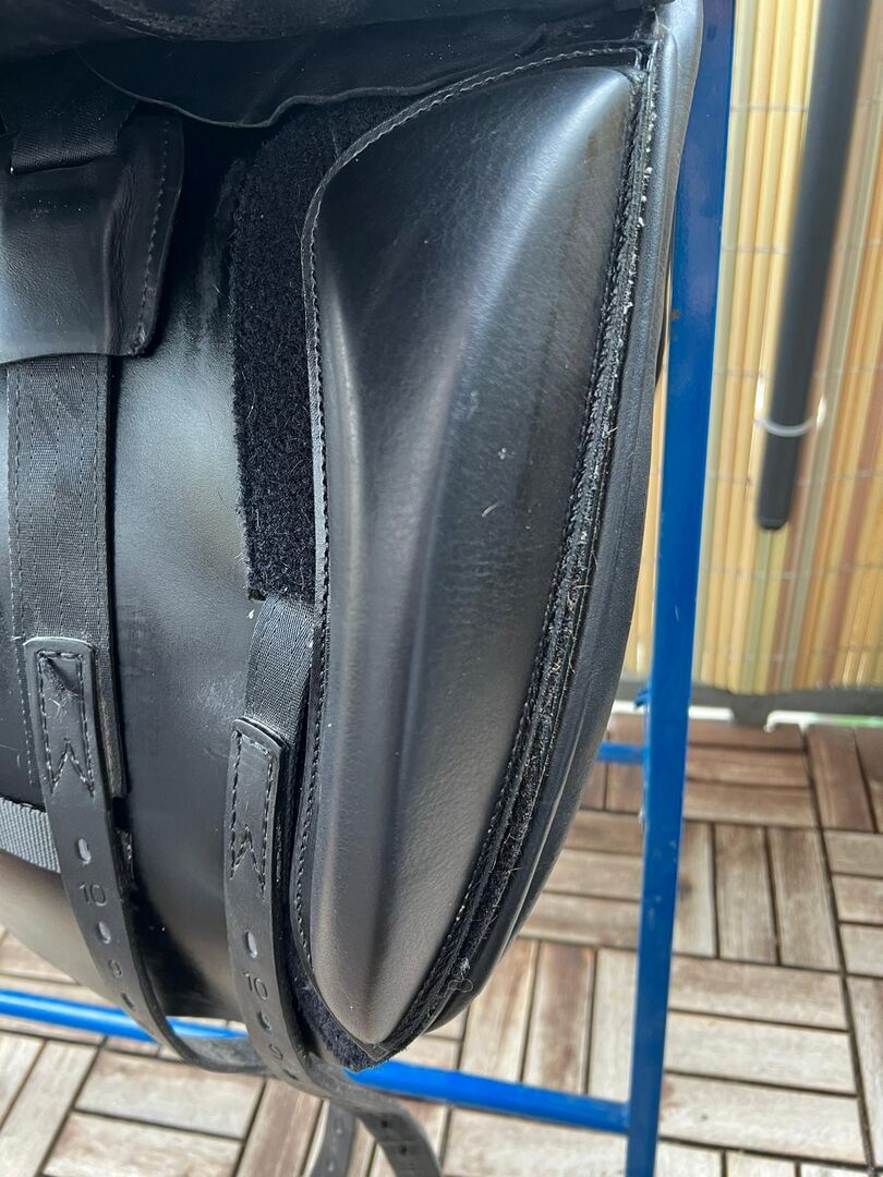 Zum Verkauf steht unser geliebter Emilio Dressursattel. Leider passt er aufgrund von Trächtigkeit und verändertem Rücken nicht mehr auf unsere Stute. Wir haben ihn Ende 2021 gekauft und seit 2022 lag er nur noch sehr sporadisch auf dem Pferd. Er hat eine 33er Kammerweite und wurde bei uns stets trocken gelagert. Unsere Stute hat eine sehr ausgeprägte Schulter und lief sehr gut unter diesem Modell. NP 2900€