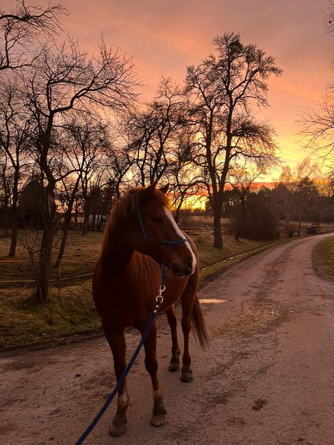 Ole - ein hübscher, westerngerittener Kleinpferdewallach, geboren im Jahr 2017. Mit seinem freundlichen Fuchs-Fell und einem Stockmaß von ca. 150 cm ist er ein echter Hingucker. Er überzeugt durch einen guten Körperbau und ein ausgeglichenes, freundliches Wesen. Bei Ole wurde im Alter von vier Jahren Arthrose in beiden Knien festgestellt. Diese schränkt ihn jedoch nur bedingt ein. Aktuelle Röntgenbilder belegen, dass sich der Zustand in den letzten vier Jahren nicht verschlechtert hat. Mit regelmäßiger, konstanter Bewegung und passendem Zusatzfutter ist er normal reitbar. Er lebt derzeit in einer harmonischen Wallachherde im Offenstall und wird auch ausschließlich in Offenstallhaltung abgegeben. Ole ist schmiedefromm und kennt sowohl den Tierarzt als auch den Anhänger. Charakterlich zeigt er sich lieb, menschenbezogen und sehr freundlich. Ole ist aufgeschlossen, verspielt und hat einen charmanten, humorvollen Charakter - manchmal ganz der kleine Kaspar. Im Kern ist Ole ein ausgeglichenes und verlässliches Pferd, das im richtigen Umfeld sehr viel Freude bereitet. Aufgrund seiner Verspieltheit ist er jedoch kein reines Anfänger- oder Kinderpferd. Unter Anleitung eines Trainers kann er aber auch von weniger erfahrenen Reitern gut gearbeitet werden. Ole besitzt eine solide Westernausbildung, kennt das Gelände und lässt sich dort ruhig reiten, auch wenn er in diesem Bereich noch etwas mehr Routine sammeln darf. Ole wurde zuletzt vor etwa einem Jahr regelmäßig gearbeitet und sollte daher behutsam wieder antrainiert werden. Er kennt zudem den Englischsattel und könnte problemlos auf die englische Reitweise umgestellt werden. Ole wird schweren Herzens abgegeben, da ihm aus Zeitgründen nicht mehr ausreichend Bewegung und Beschäftigung geboten werden können. Er kommt nur in beste, verantwortungsbewusste Hände und wird nicht an Schulbetriebe oder Händler abgegeben.