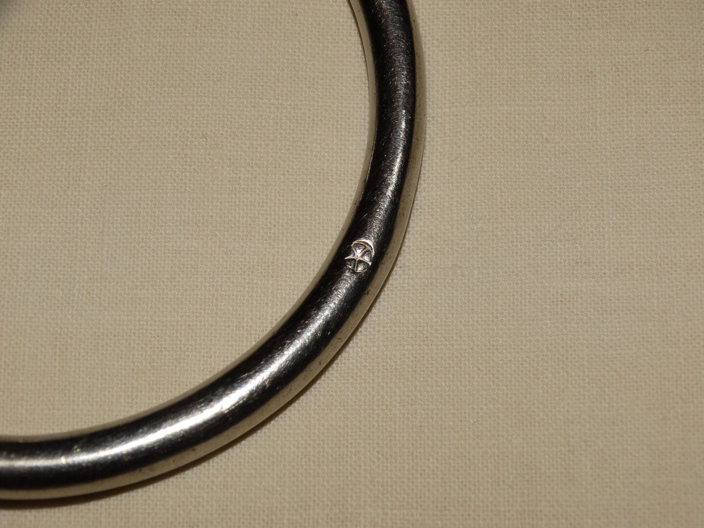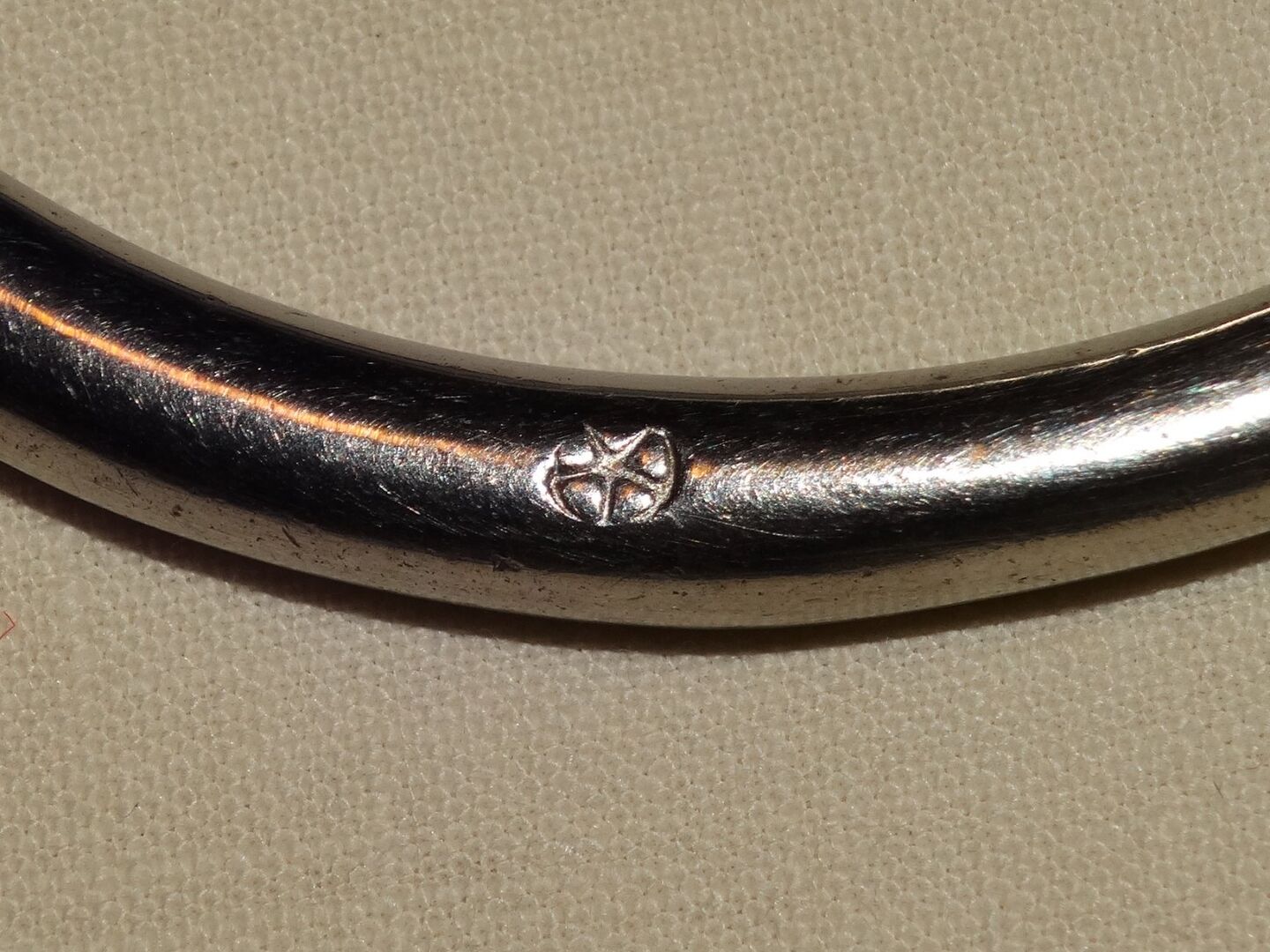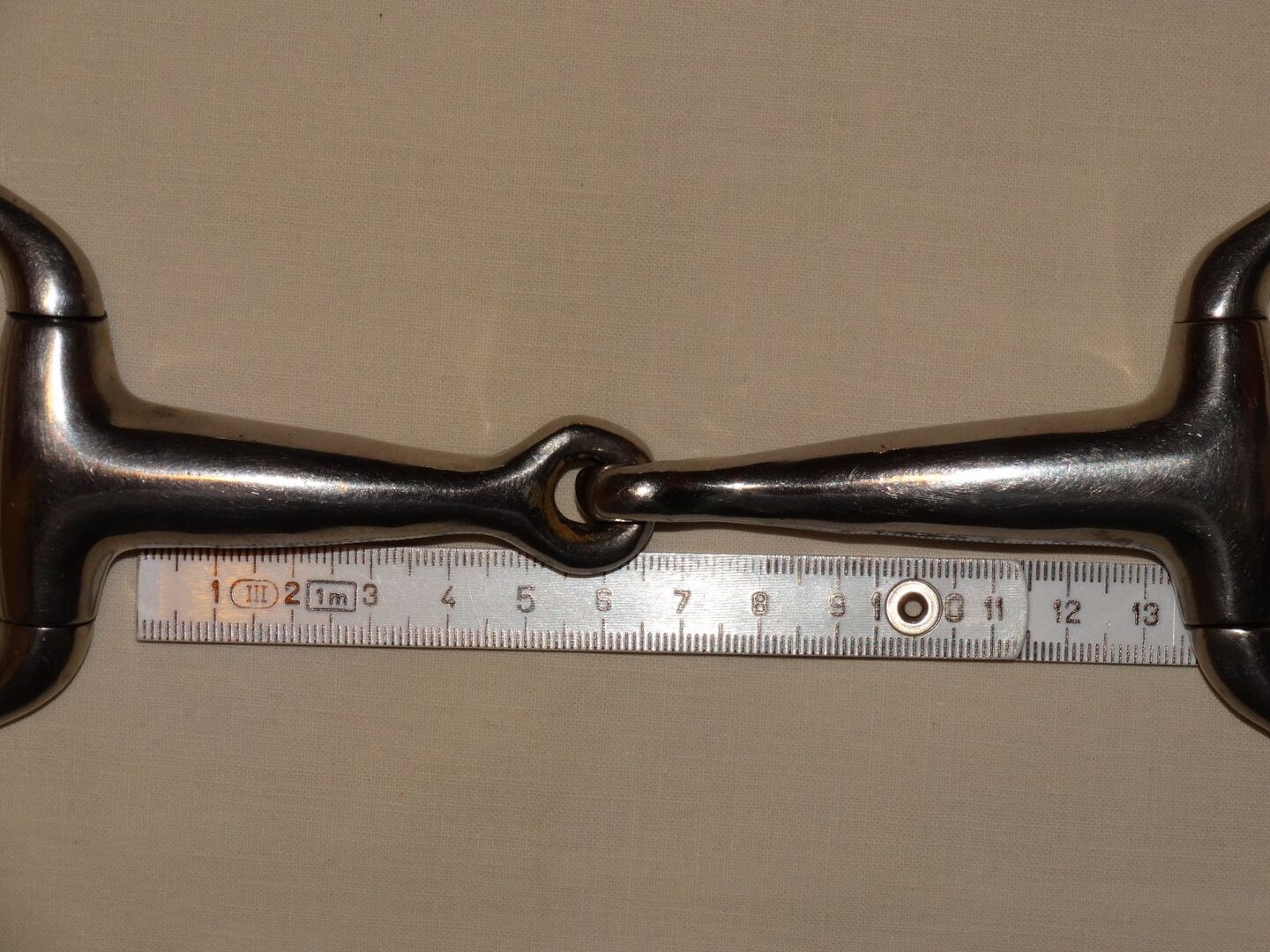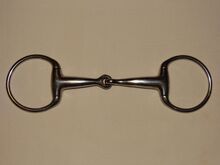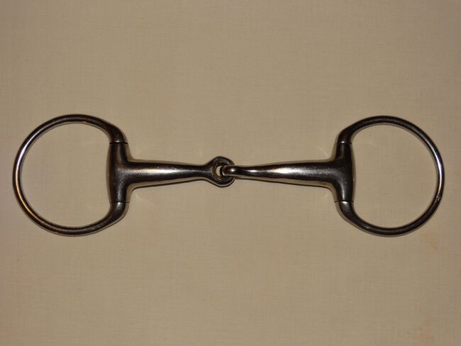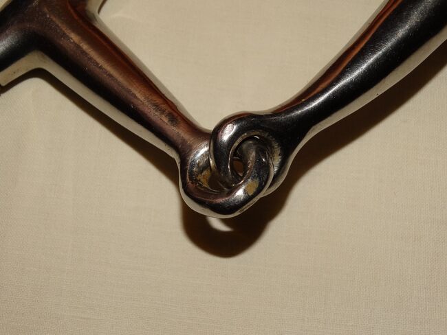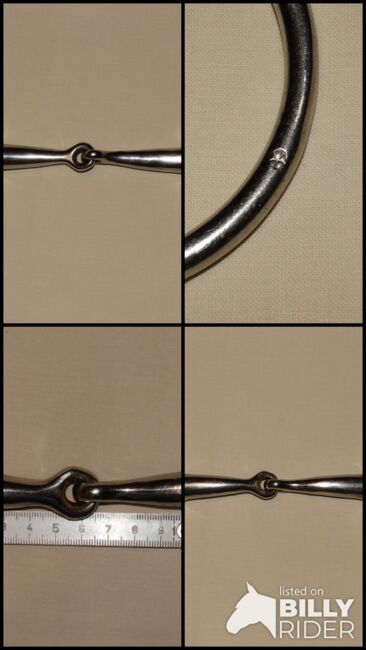 Gebrauchtes Olivenkopfgebiss abzugeben. Marke siehe Bilder, ich kann leider nicht erkennen was das sein soll. Größe 13,0 cm. Ca. 1,8 cm dick. Innenringdurchmesser 5,6-7 cm. Ca. 395g schwer. Zustand bitte den Bildern entnehmen, danke!