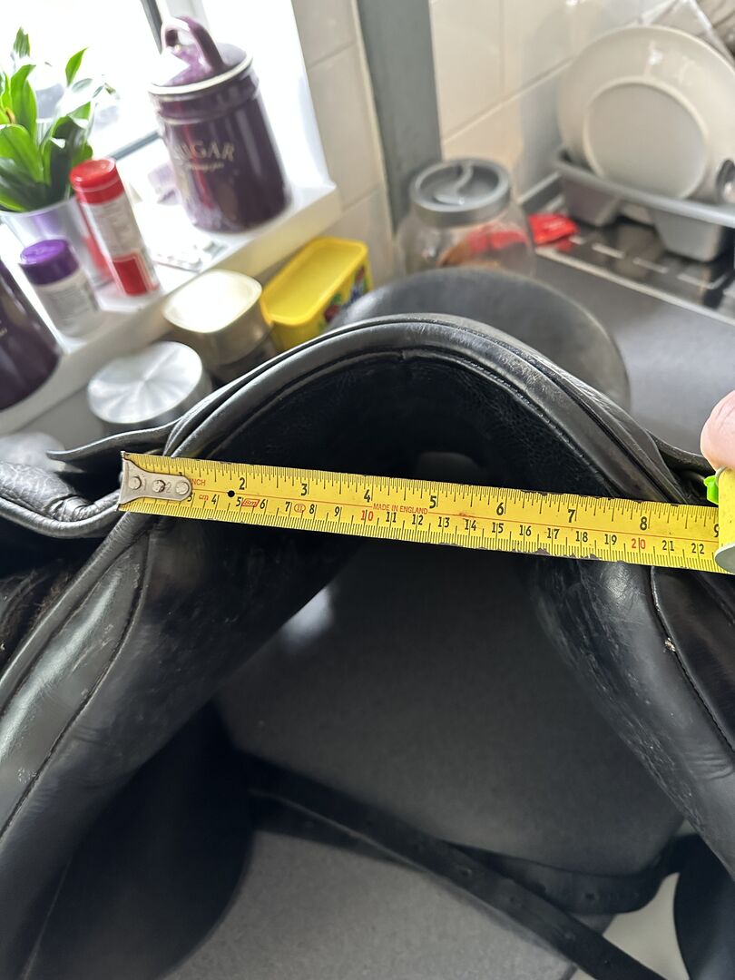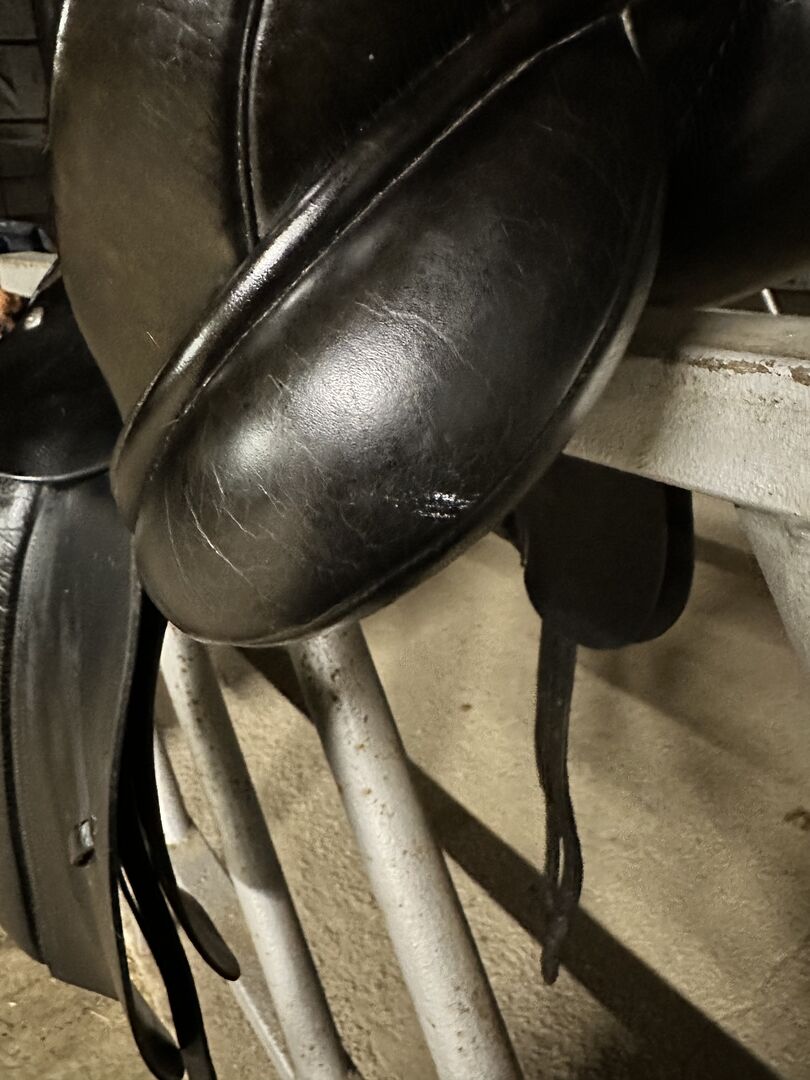 Schwarz optimale Leistung 17,5 breite Dressursattel in sehr gutem Zustand. Keine Risse oder Tränen und Gurtstrippen in sehr gutem Zustand. Der Sattel bietet dem Fahrer einen tiefen und sicheren Sitz mit großen beweglichen Knieblöcken für volle Unterstützung
