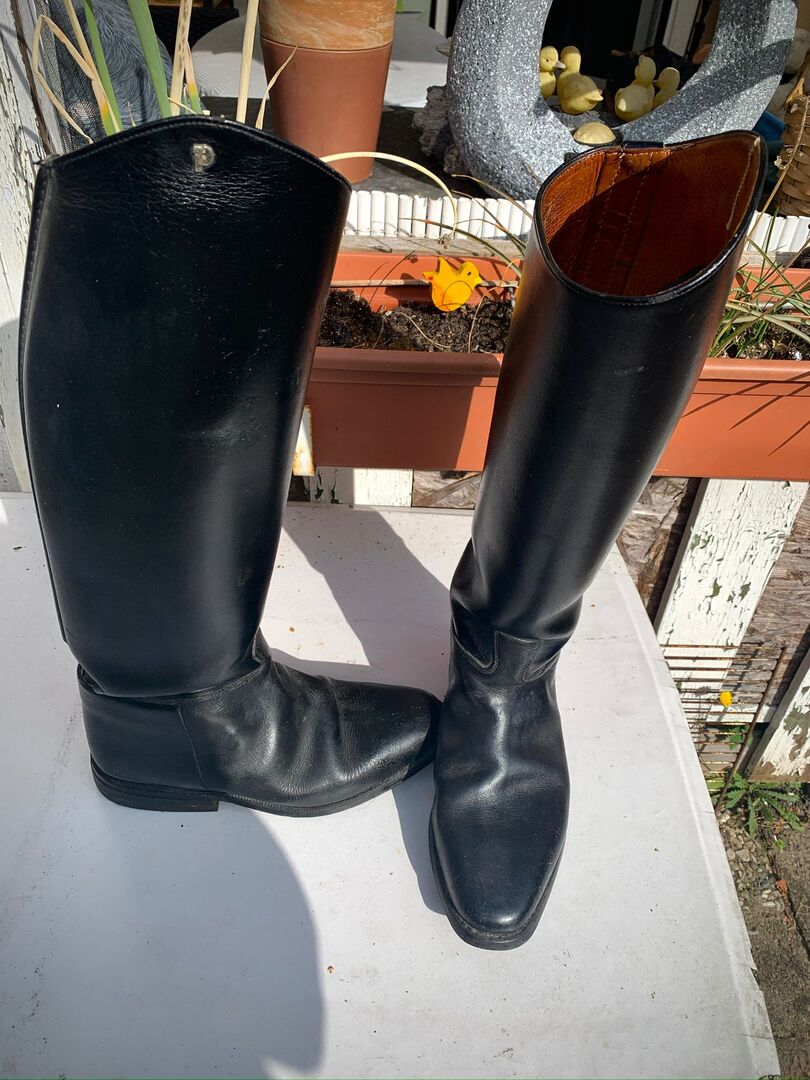 Ich verkaufe meine Petrie Reitstiefel von früher. Der Zustand ist ok. Das Leder ist noch ziemlich hart, muss also noch eingelaufen werden An manchen Stellen ist das Leder etwas porös (siehe Bilder), aber nur an den Falten. Die Hacke wurde neu gemacht Versand ist inclusive