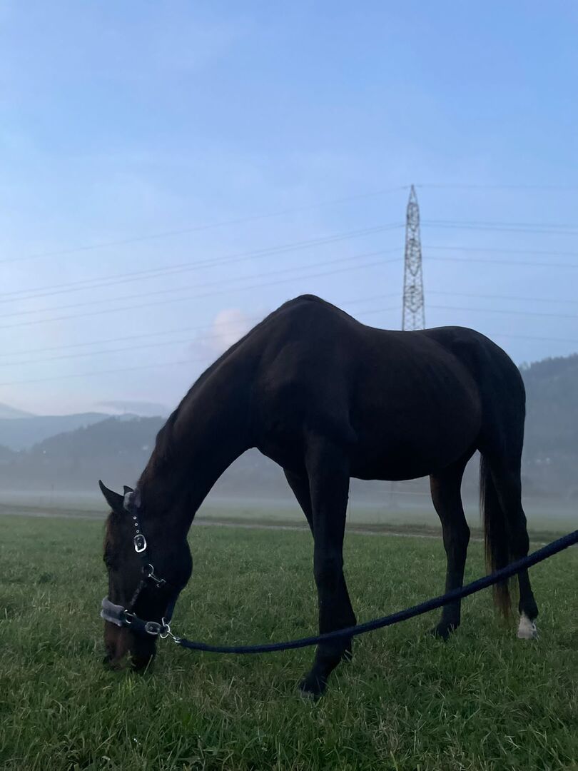 Loterus ist ein englisches Vollblut und wird im Juni 23. Er wurde von mir selbst seit 2 Jahren nicht mehr geritten, jedoch ist ihn meine kleine Schwester noch geritten. Er liebt Spaziergänge, Bodenarbeit und Schmuseeinheiten.