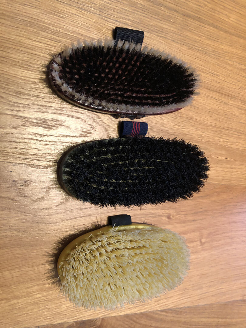 Verkaufe frisch gewaschene kardädschen. Weil ich sie in der Waschmaschine gewaschen habe, ist am Rand die Farbe etwas ab. Es sind weiche Borsten. (trifft nur auf die braune und grüne kardätsche zu). Die gelbe Bürste ist per Hand gewaschen worden und hat harte Borsten.